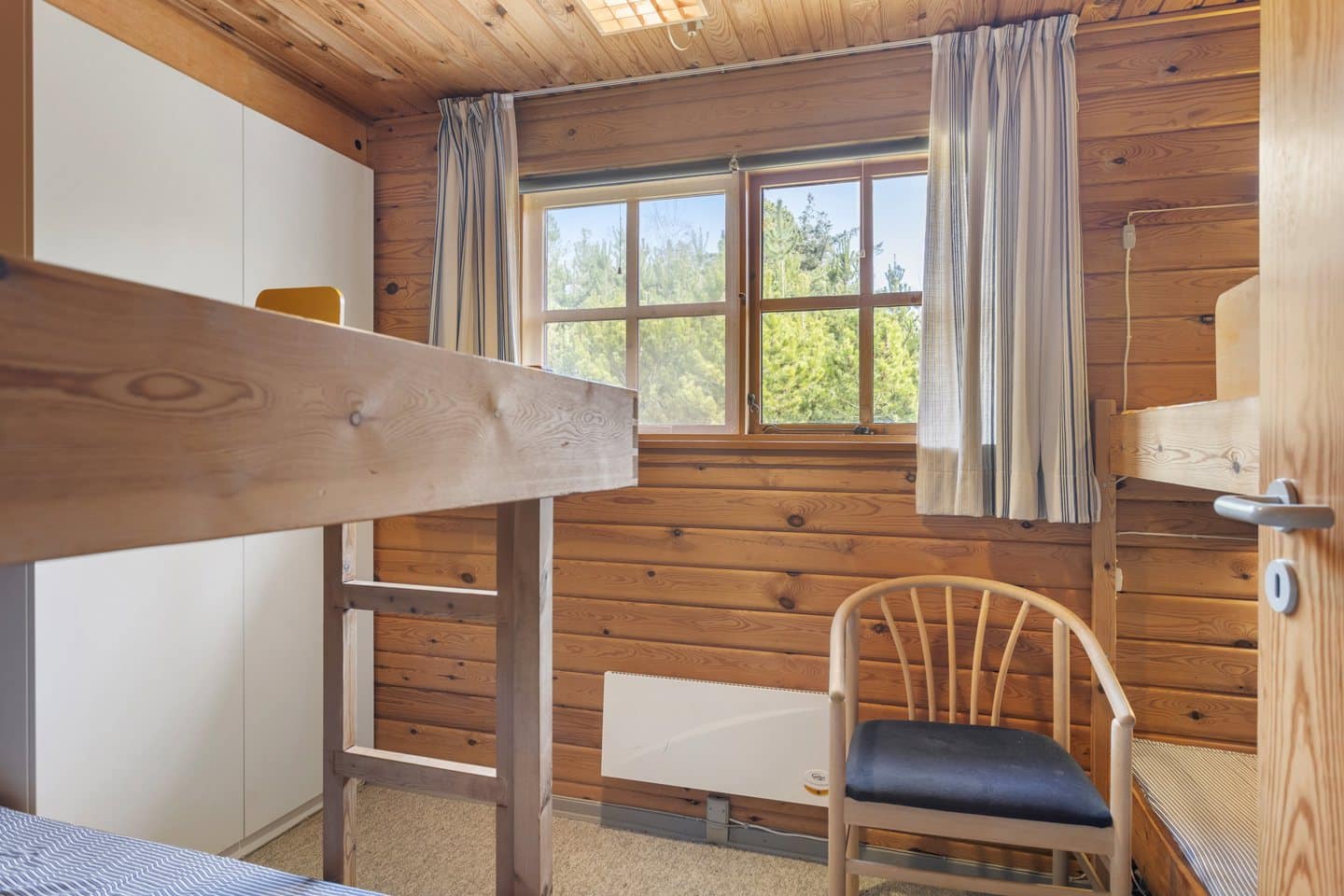 Husets indretning emmer af varme og autenticitet med sine smukke bjælkevægge, sprossede vindues-partier og velvalgte detaljer, der skaber en indbydende atmosfære.