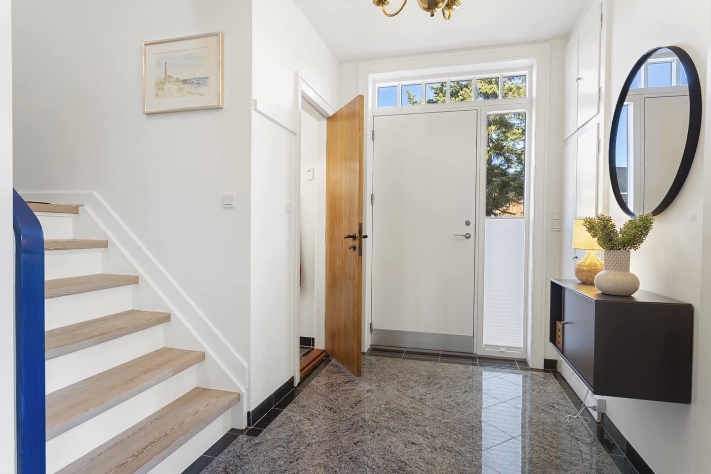 Boligen byder på en rummelig entré med badeværelse samt åben trappe til både 1. sal og kælder. Køkken-alrum og stue med skønt lysindfald. Stuen har brændeovn og direkte udgang til hævet terrasse mod sydvest.