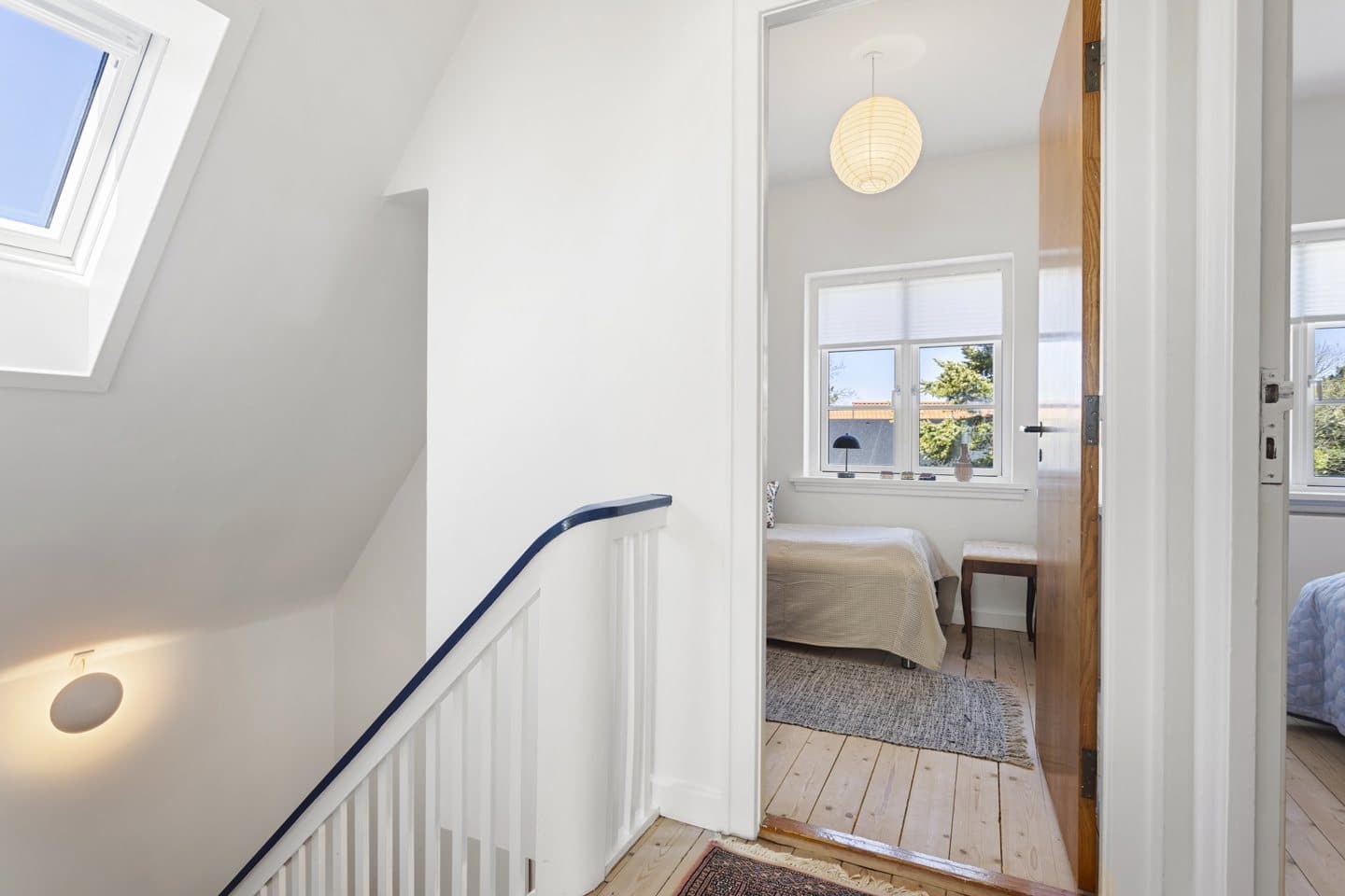 1. sal byder på repos med to værelser samt stort soveværelse med skabe og flot udsigt til Vesterby og de røde tegltage. Kælderen indeholder god mellemgang med badeværelse, bryggers samt to værelser, hvoraf det ene fungerer som opholdsrum. Endvidere findes et mindre depotrum.