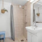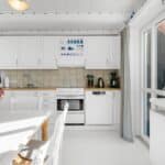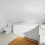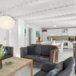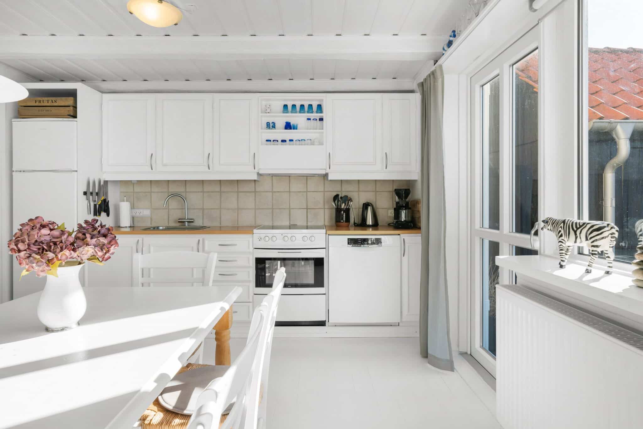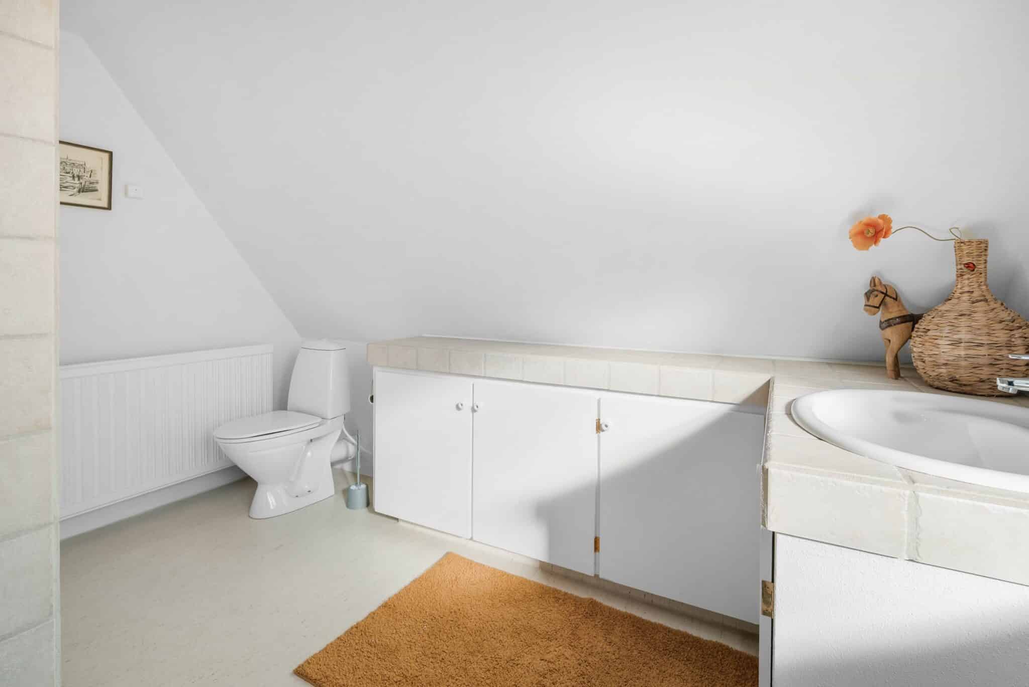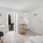 Husets hjerte er det store opholdsrum, hvor køkken, spiseplads og stue er samlet i ét – lyst, åbent og med direkte udgang til en solrig terrasse.