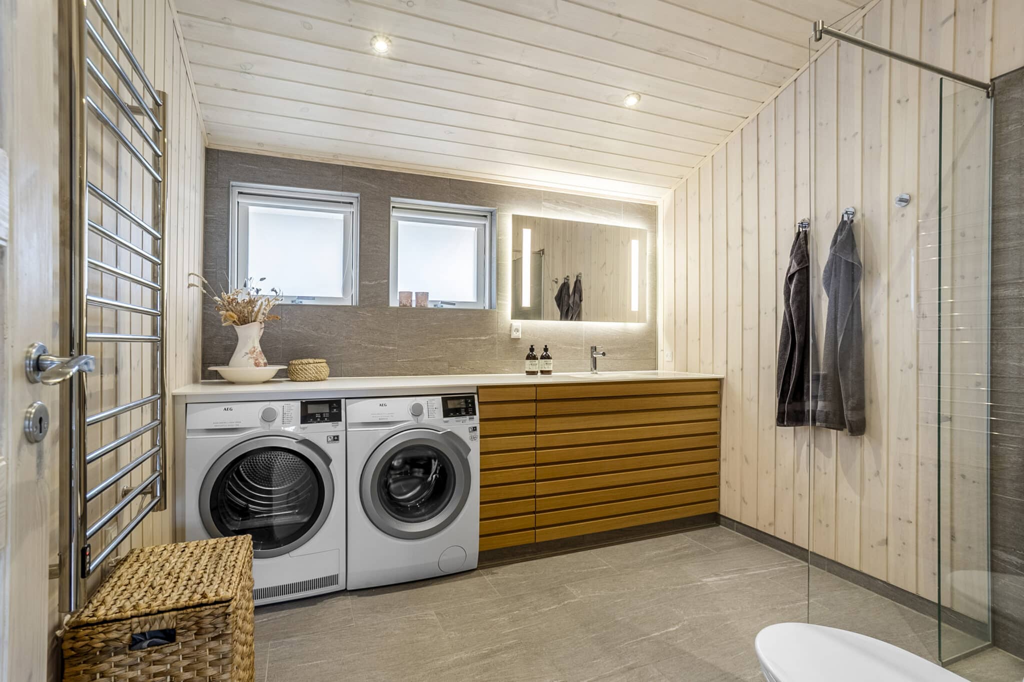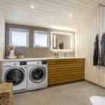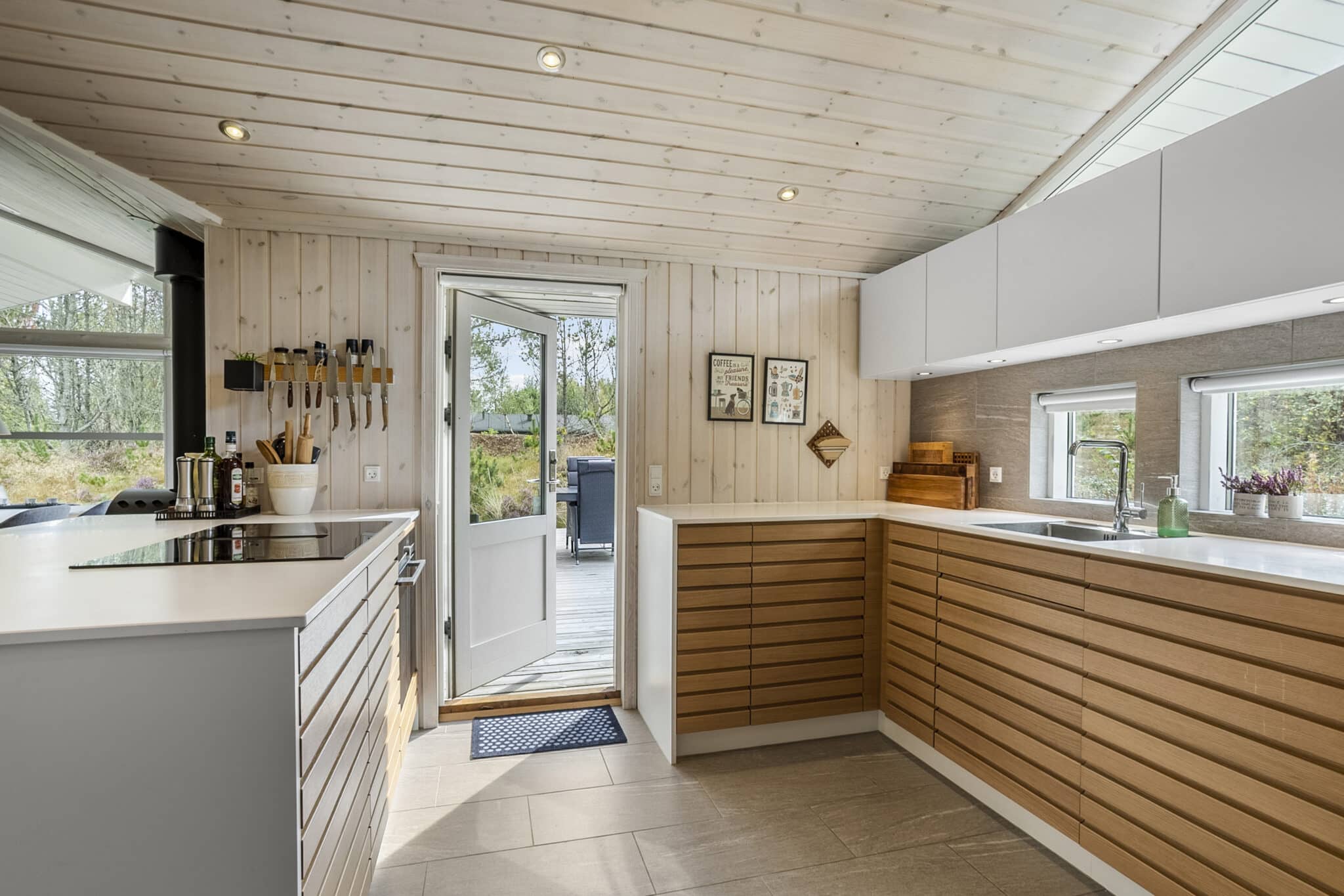 Huset byder på en gennemtænkt planløsning med lys og luft. Stuen med loft til kip og brændeovn skaber varme og atmosfære, mens det moderne køkken i åben forbindelse med stuen indbyder til hyggelige middage og sociale stunder. Fire gode soveværelser, to elegante badeværelser og smarte opbevaringsløsninger sikrer komfort og funktionalitet for hele familien. Et tilknyttet udhus giver masser af plads til opbevaring.