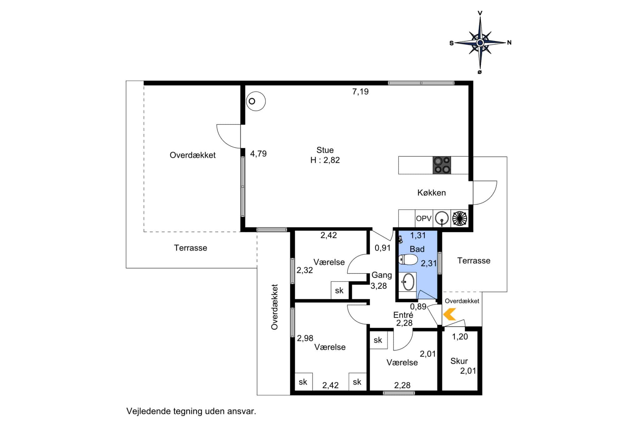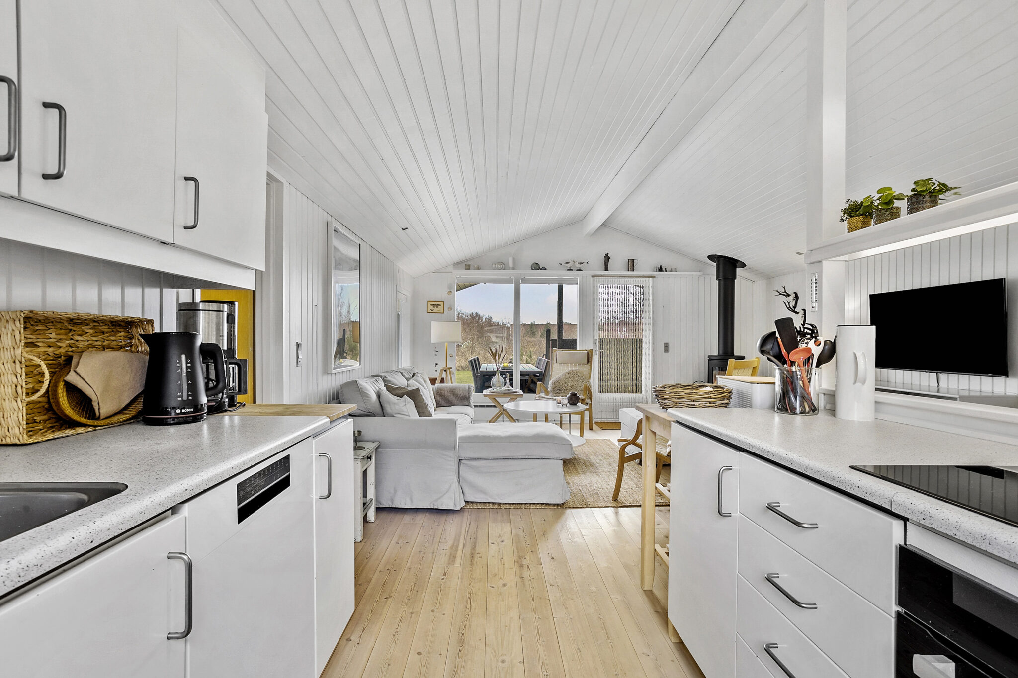Huset er beliggende på en rummelig grund på 800 m², hvor der er rig mulighed for at nyde de lange, lyse sommeraftener. Den åbne grund er ideel for børnefamilier, der ønsker at lade børnene lege frit, mens de voksne kan slappe af på terrassen med en god bog eller en kop kaffe. Køkkenet er funktionelt og hyggeligt, med direkte adgang til haven, hvilket gør det nemt at servere måltider udendørs på de varme dage.