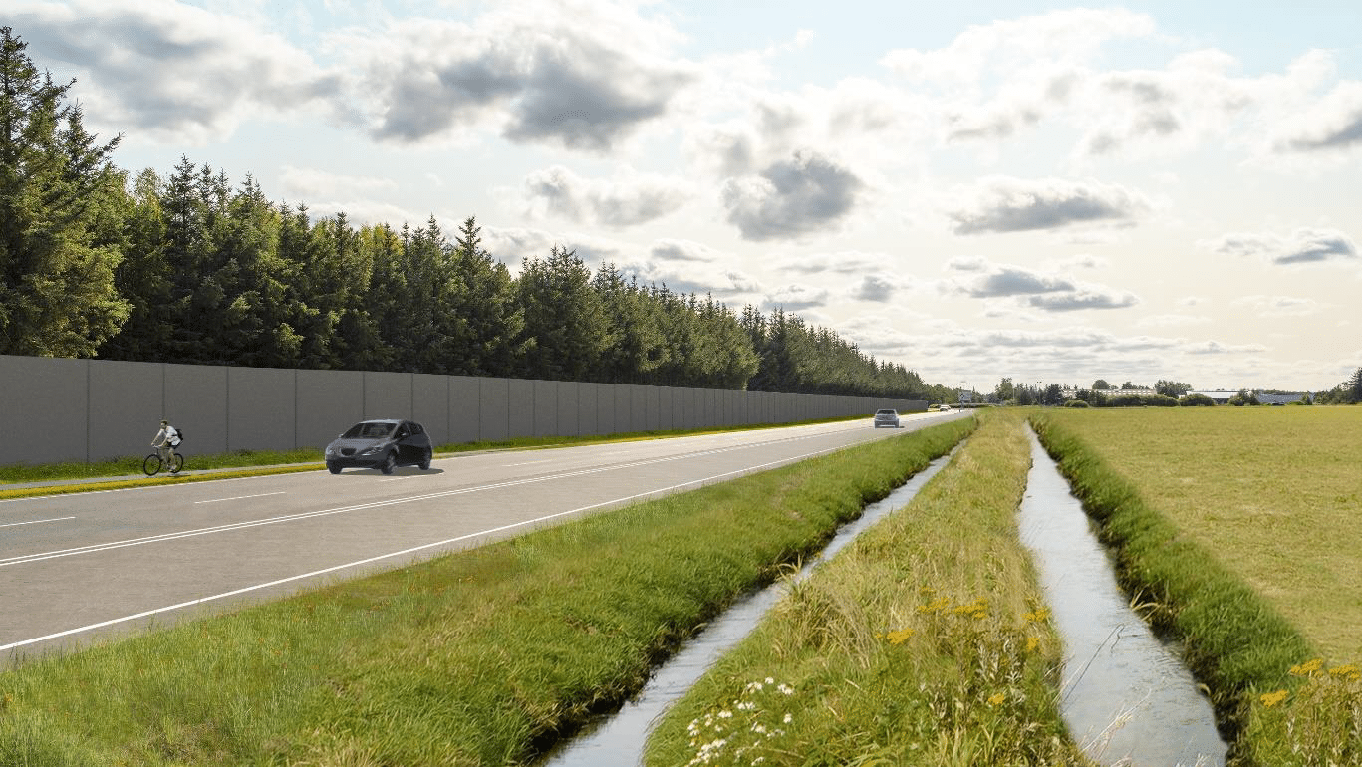 ”For at forhindre støjgener fra vejen er det en god løsning med den planlagte støjskærm, de første 1,4 km fra rundkørslen,”