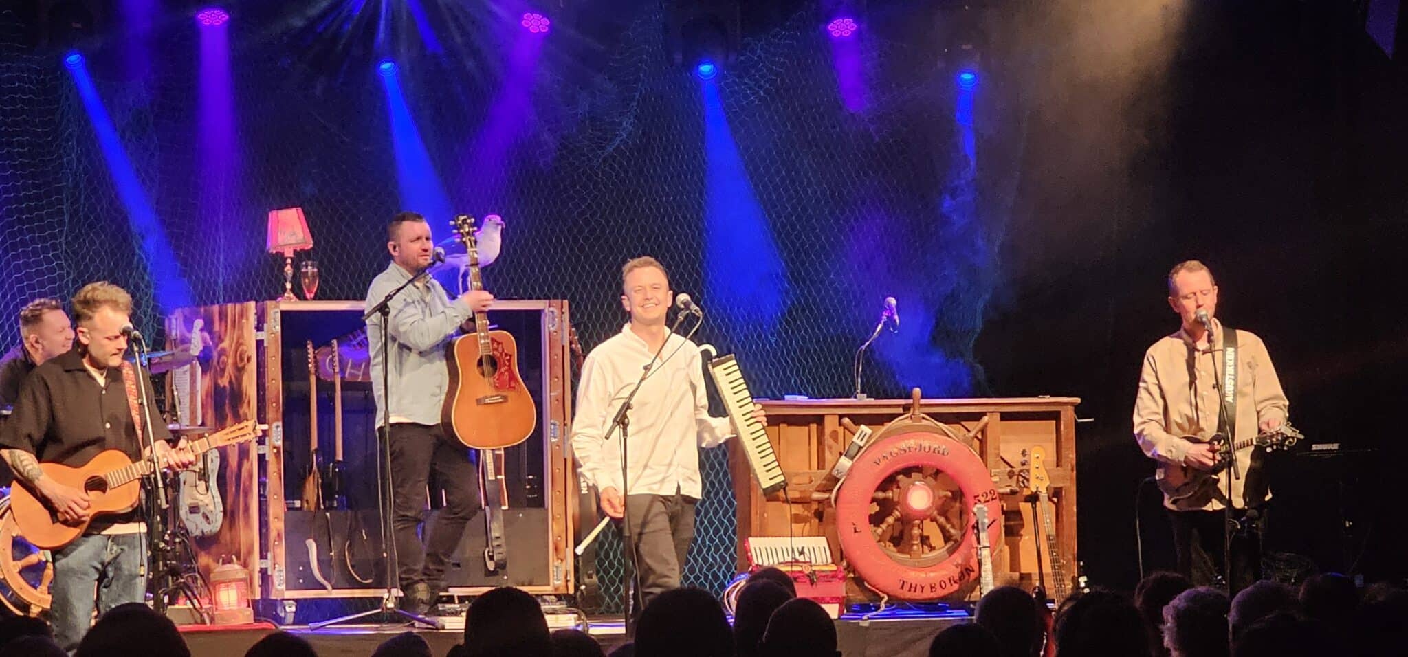 Lørdag aften spillede bandet nemlig for et fyldt Kulturhus Kappelborg i Skagen, og det blev en koncert, som i høj grad satte sig fast hos publikum. For de fem fætre leverede ikke bare musik – de leverede også charme, humor, nærvær og en lind strøm af lunefulde anekdoter og røverhistorier, som var med til at gøre aftenen til noget ganske særligt.