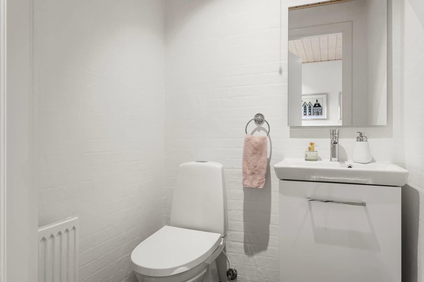Boligen er indrettet med fire regulære værelser, som giver plads til både børn, hjemmearbejde og gæster. Der er både badeværelse og separat gæstetoilet, hvilket bidrager til en praktisk indretning i en travl familiehverdag.