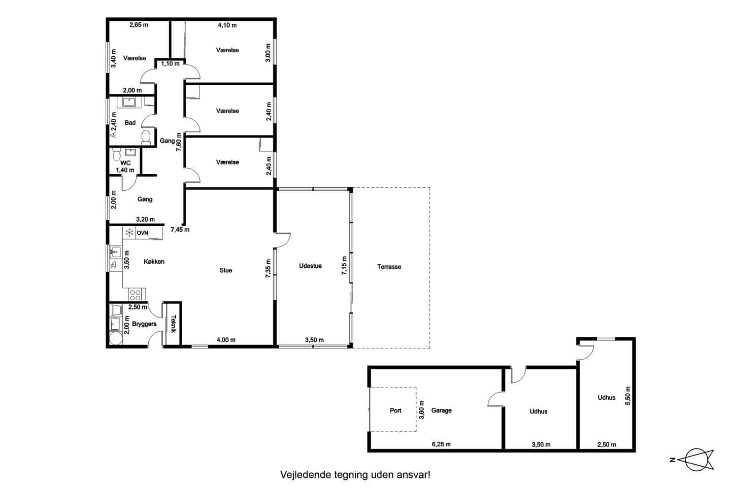 Til ejendommen hører en muret garage med tilhørende værksted, som giver ekstra anvendelsesmuligheder – hvad enten det er til bil, opbevaring, hobby eller mindre projekter.