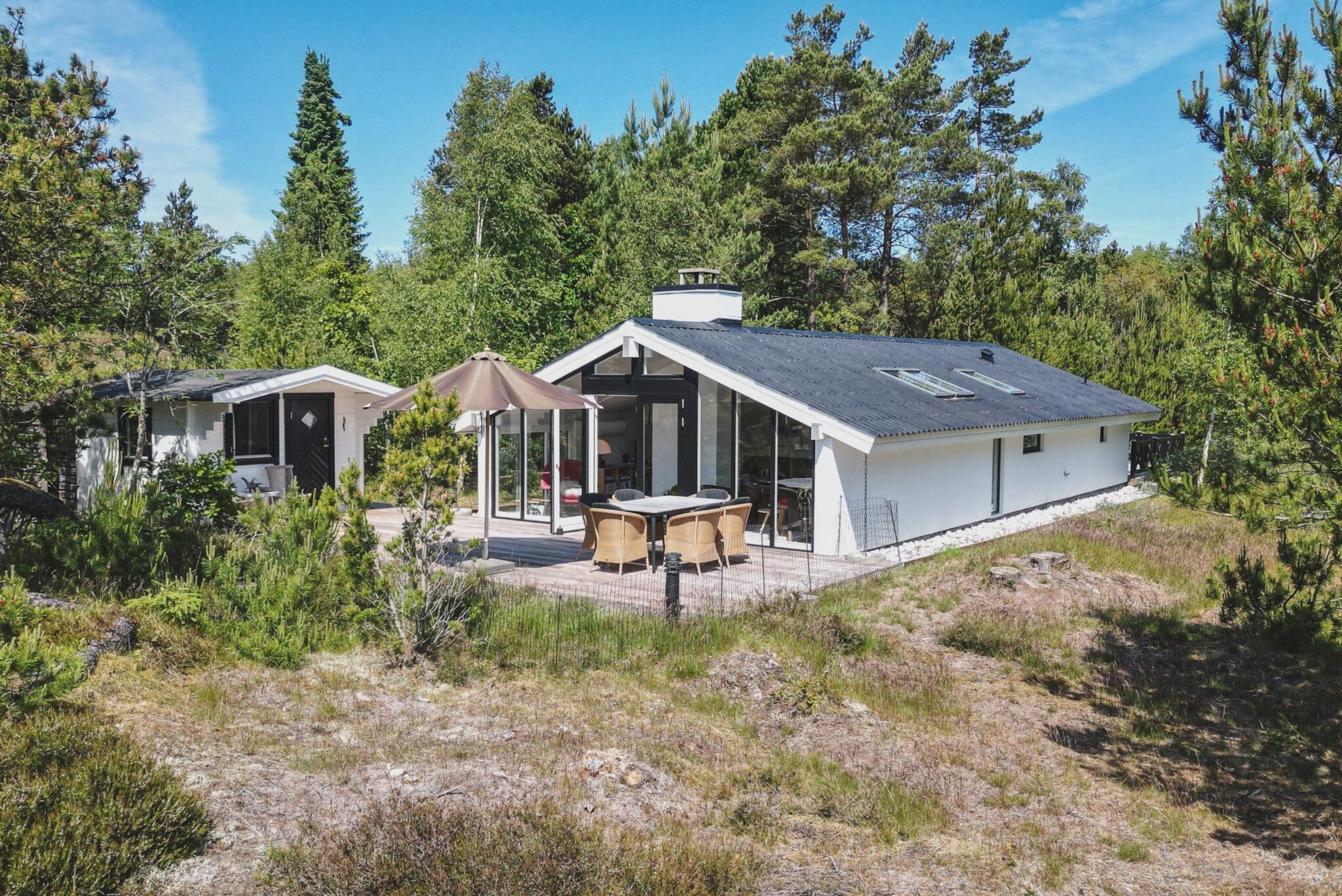 På en skøn, kuperet naturgrund, omkranset af klitter og skov, ligger dette stemningsfulde og arkitekttegnede sommerhus – et helt særligt fristed for naturelskeren, der ønsker fred, ro og æstetik i ét.