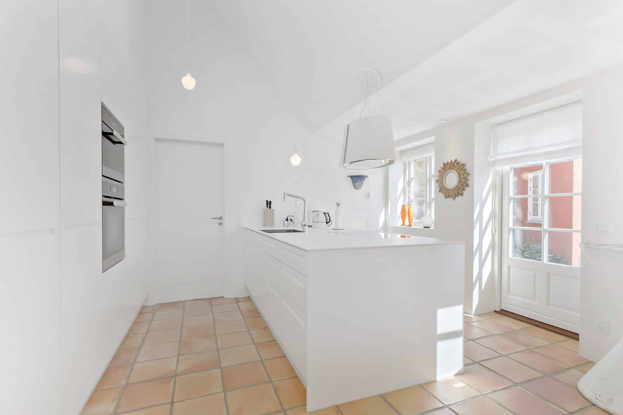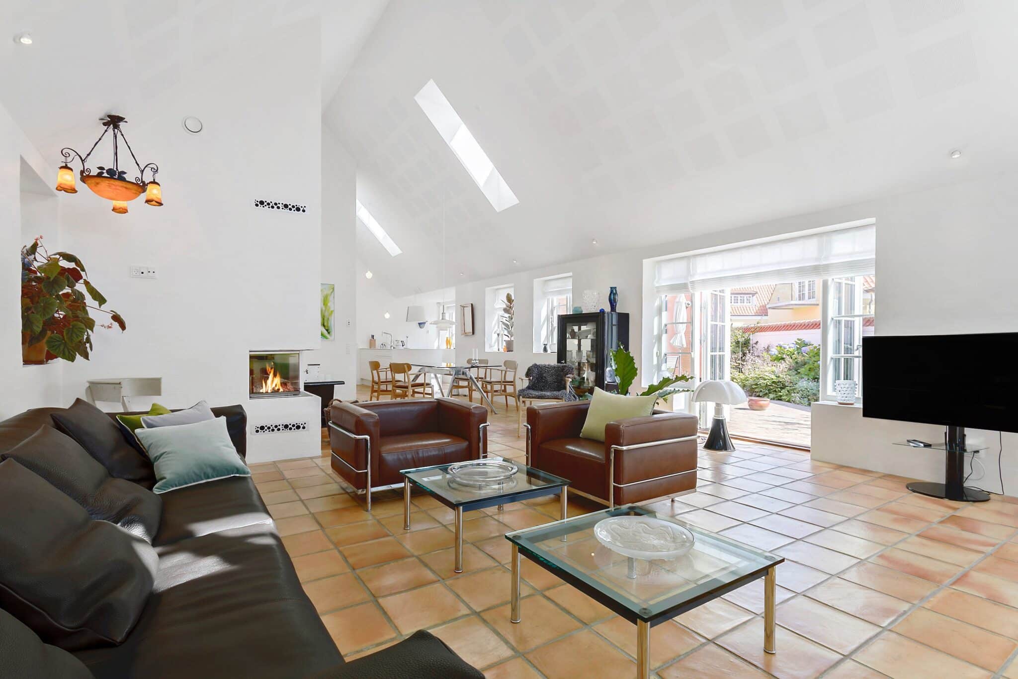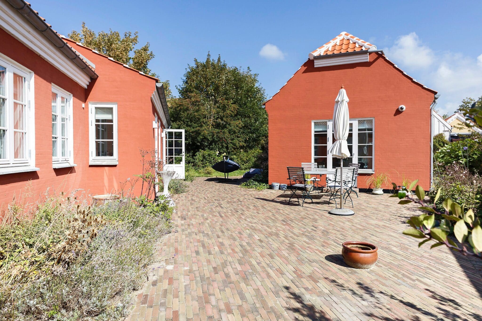 Det hele er omgivet af en over 900 m² stor grund med små kroge, læfyldte terrasser og en ro, der kan mærkes.
