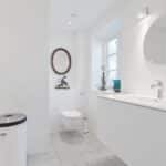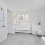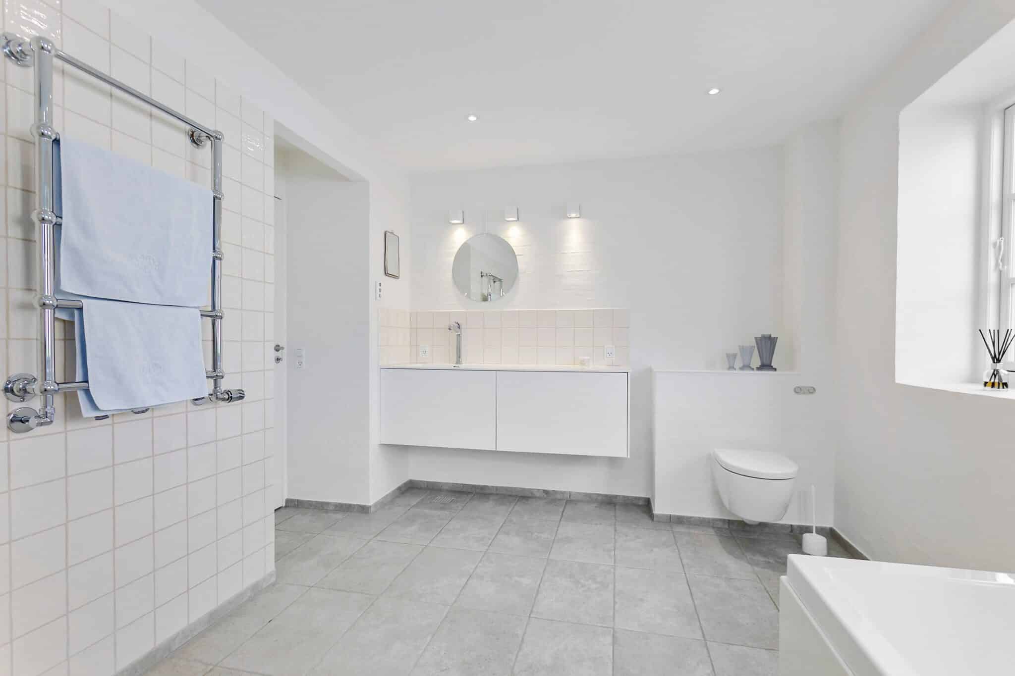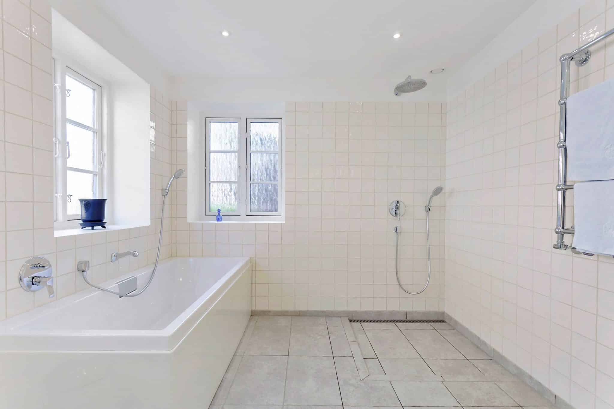 Husets hjerte er det store køkken-alrum med loft til kip og en lethed i lyset, der strømmer ind gennem ovenlysvinduer og brede glaspartier. En rolig entré leder videre til bryggers og gæstetoilet, og i masterafdelingen venter et soveværelse med tilhørende badeværelse – med bruseniche og badekar, som skabt til stille stunder.