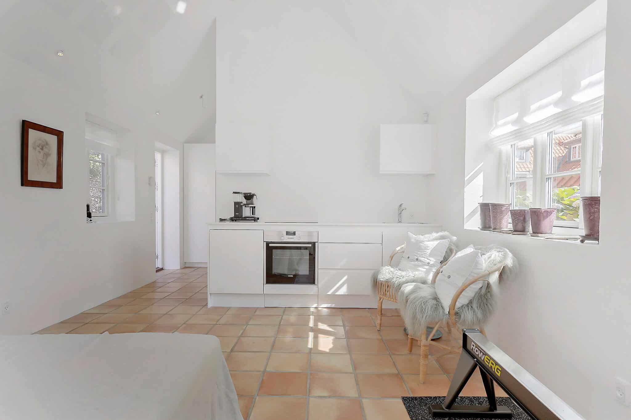 Som en ekstra gave ligger et smukt anneks på 40 m² i haven, registreret som boligareal. Her er der indrettet et selvstændigt opholdsrum og badeværelse – oplagt som gæstehus, atelier eller kreativt frirum. Derudover er der et udhus og en carport på i alt 32 m².