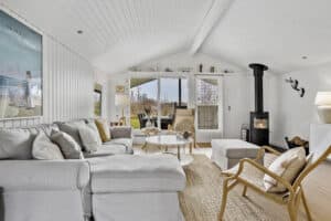 De store vinduespartier sikrer et fantastisk lysindfald, der fylder rummene med en behagelig og afslappende stemning.