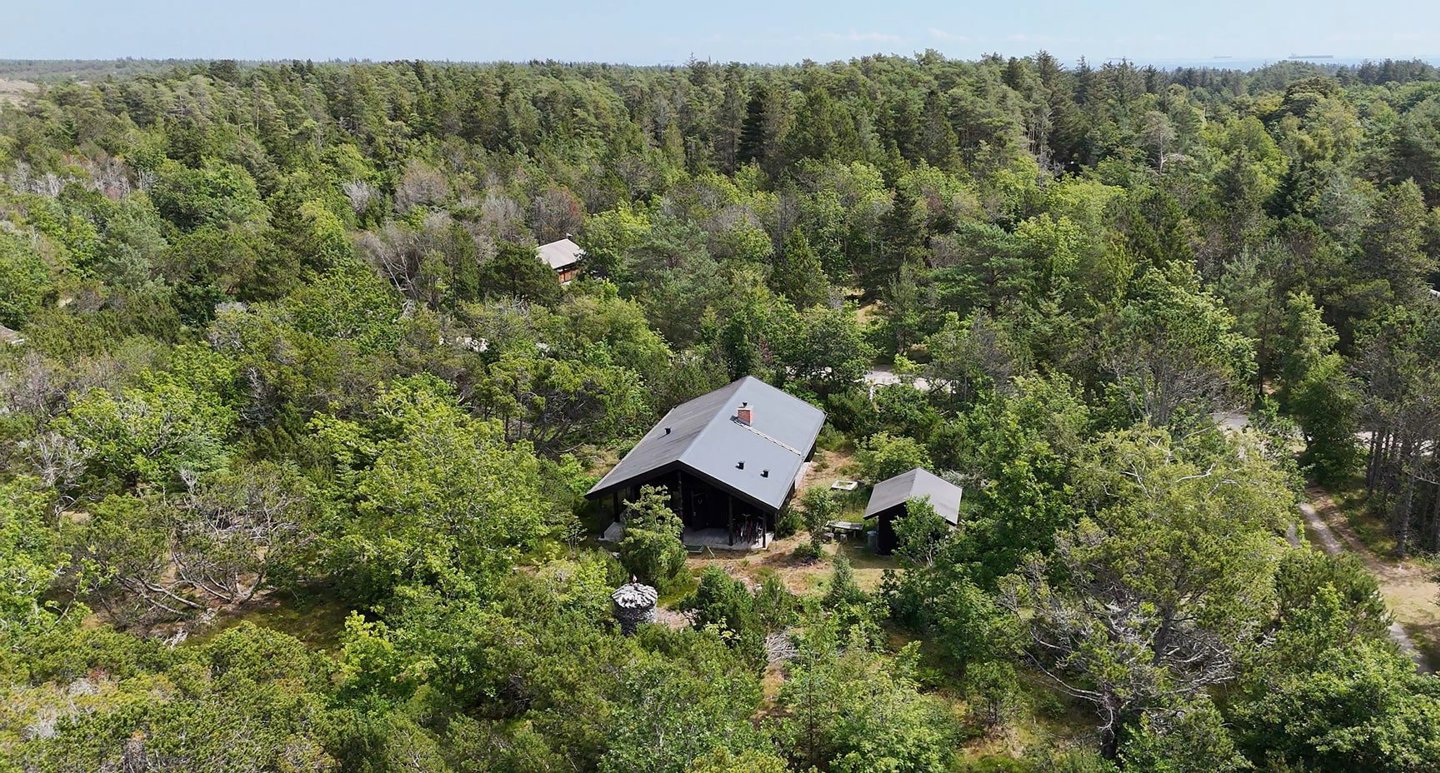 Sommerhuset er placeret på en skøn naturgrund, hvor lyng, egekrat og nåletræer smelter sammen og skaber en fredfyldt atmosfære. De overdækkede terrasser indbyder til lange, afslappende dage under åben himmel – uanset vejret. Indvendigt mødes du af en stemningsfuld indretning, hvor lyset strømmer ind gennem store vinduespartier, og naturen inviteres indenfor.
