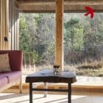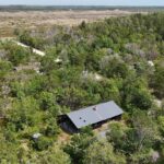 Sommerhuset er placeret på en skøn naturgrund, hvor lyng, egekrat og nåletræer smelter sammen og skaber en fredfyldt atmosfære. De overdækkede terrasser indbyder til lange, afslappende dage under åben himmel – uanset vejret. Indvendigt mødes du af en stemningsfuld indretning, hvor lyset strømmer ind gennem store vinduespartier, og naturen inviteres indenfor.