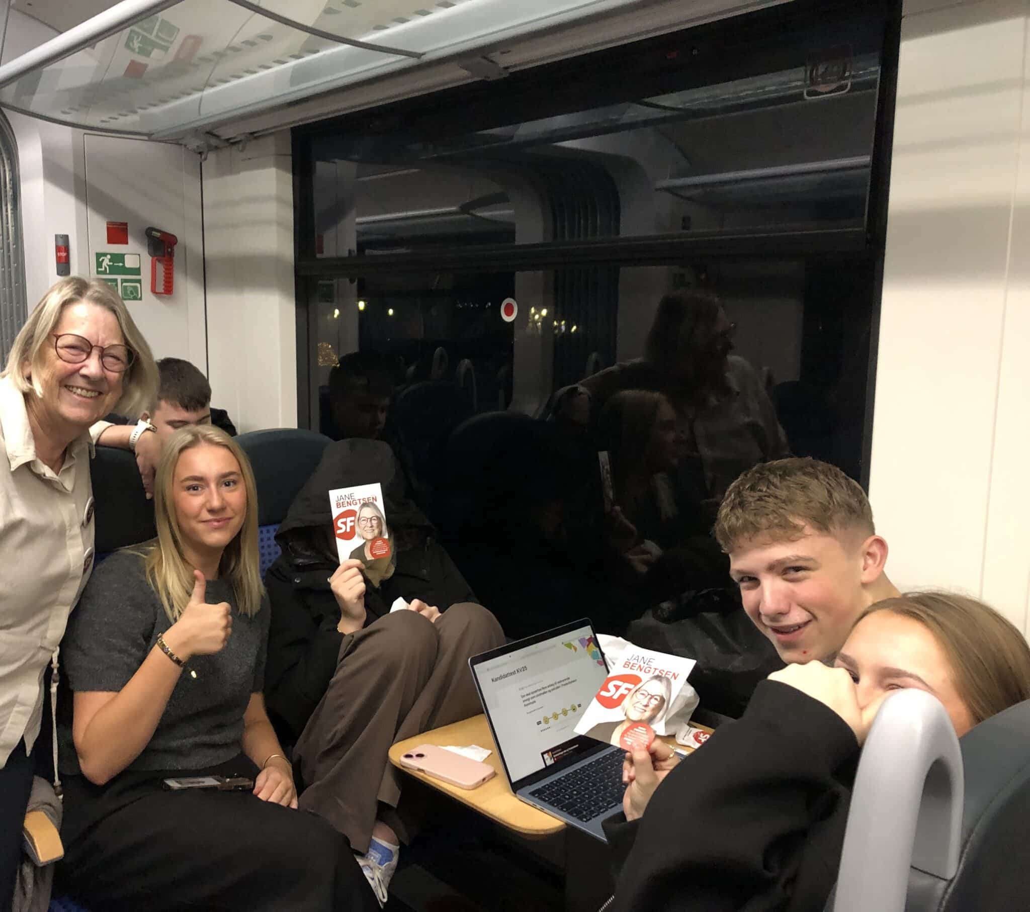 Jeg har vedhæftet et par billeder af de søde elever, jeg mødte i morges. Det er ikke nødvendigvis dem, som fortalte om alle oplevelserne med ældreplejen; men de arbejdede hårdt med en kandidattest, som mundede ud i, at de skulle stemme på SF eller de konservative. Det var også overrraskende. Jeg opfordrede dem selvfølgelig til at stemme SF.
