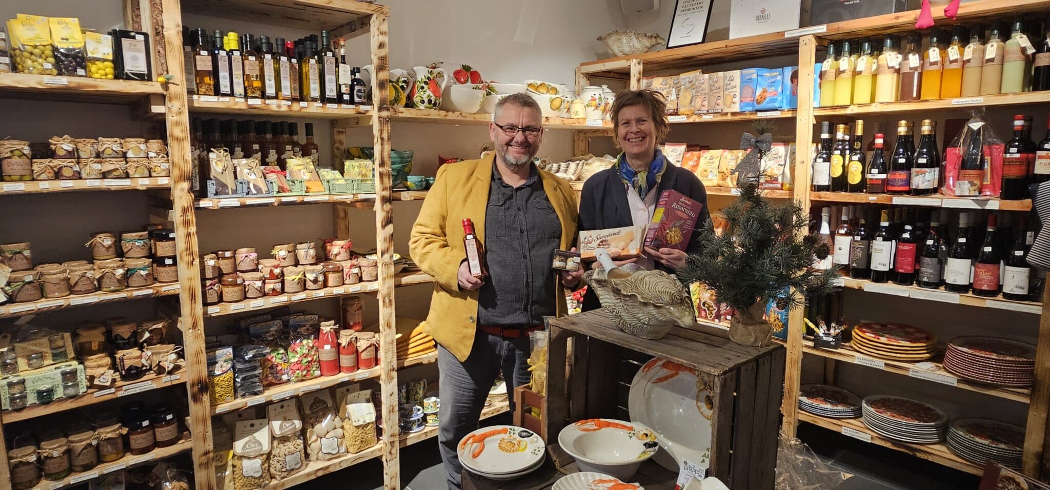 Mange kommer i denne tid forbi efter glutenfri lækkerier til gæster, til jule- og nytårsborde eller for at sammensætte gavekurve med italiensk vin, delikatesser og keramik.