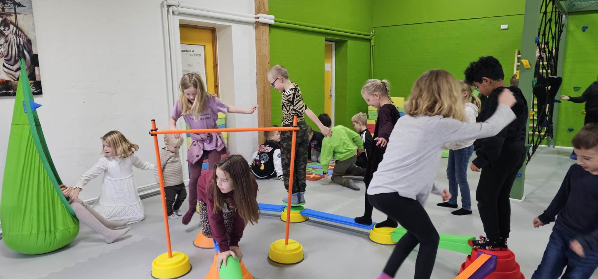 Motorik- og legebevægelsesrummet blev skabt med ét klart formål: at styrke børnenes motoriske færdigheder gennem leg og bevægelse – og samtidig give dem mulighed for at udvikle sociale kompetencer, selvværd og legekompetencer. Med klatrevægge, balancebaner, Hulehængekøjer, et stort edderkoppespind, skumbyggeklodser, Air track, sjove spil og bløde madrasser blev rummet indrettet til at inspirere til sjov, udfordring og fællesskab, ligesom det kan bruges som en alternativ idrætstime for skolens yngste.