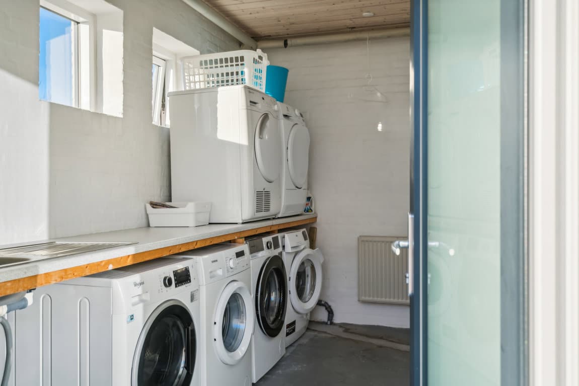 I ejendommen findes et separat fælles vaskerum, hvor hver af ejendommens fire lejligheder har sin egen vaskemaskine – en praktisk og velfungerende løsning.