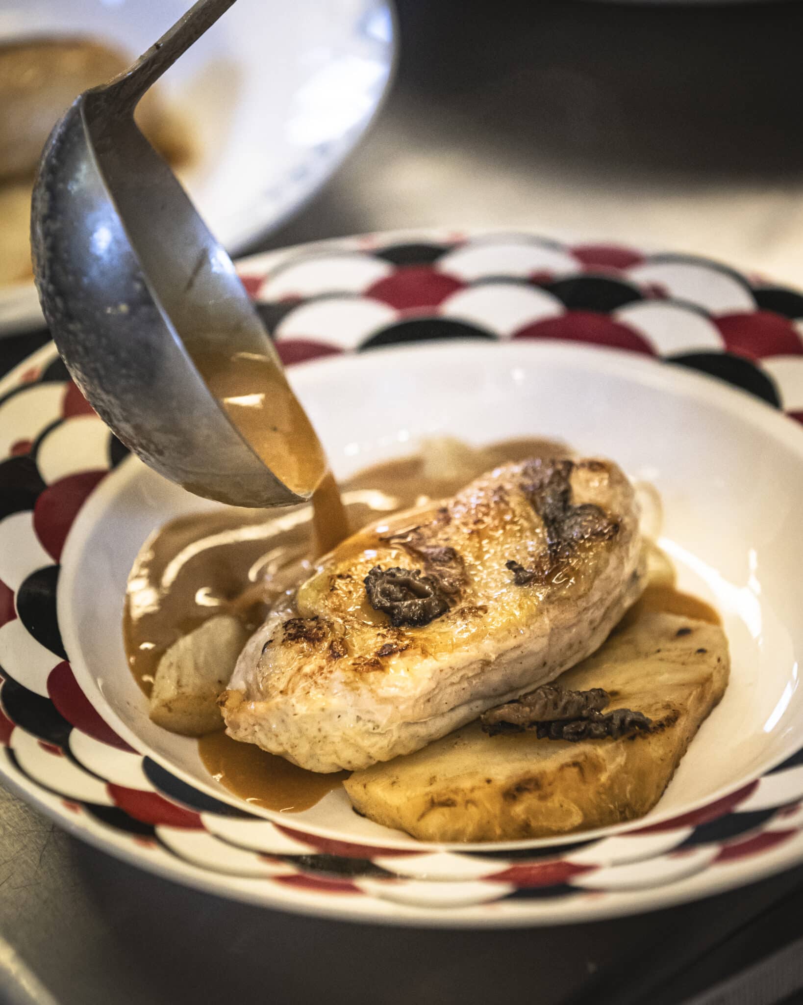 Bag gryderne og ved bordene stod ingen ringere end gastronomiens levende legende Michel Michaud, der sammen med Apéros køkkenchef Benoit Stas havde sammensat en helt særlig 3-retters menu til lejligheden. Med 46 glade gæster i huset blev det en aften fyldt med små anekdoter, gode grin og ikke mindst smage, der matchede både Skagen og midsommerens lyse nætter.