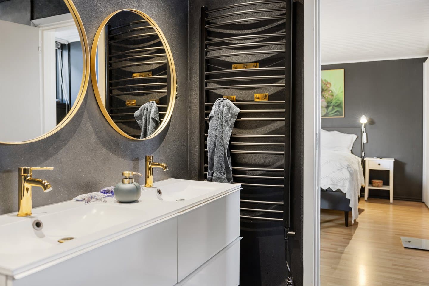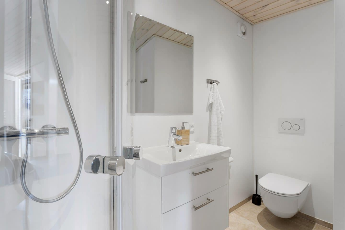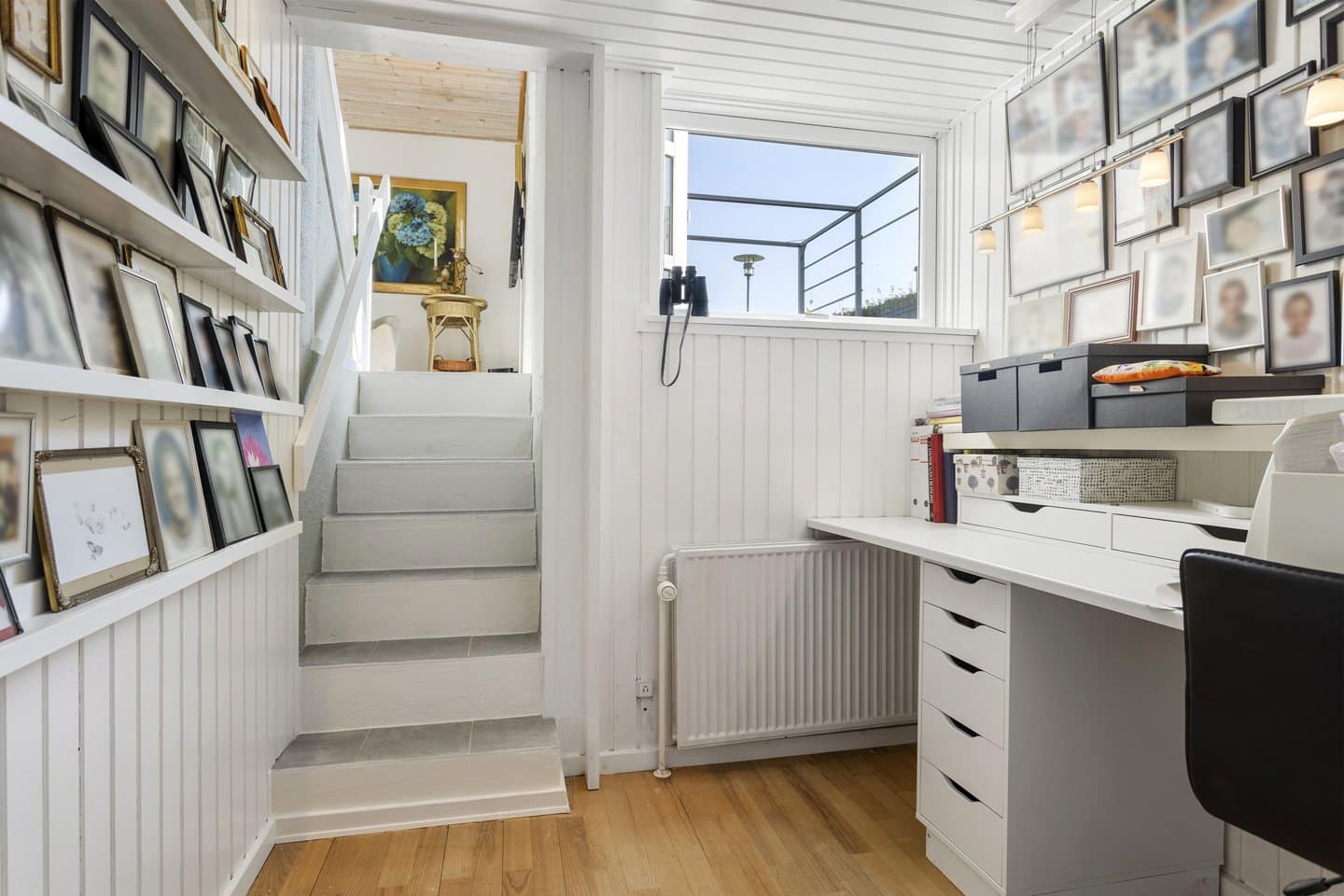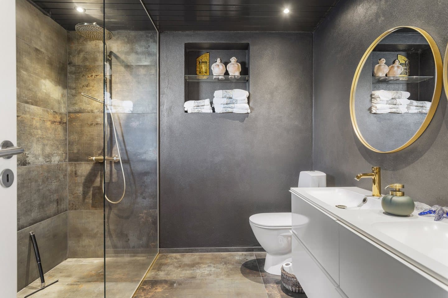Kælderen er indrettet med kontor, stort soveværelse og lækkert badeværelse med bruseniche. Man har på ingen måde fornemmelsen af, at underetagen er en kælder – den er fuldt integreret i boligen.