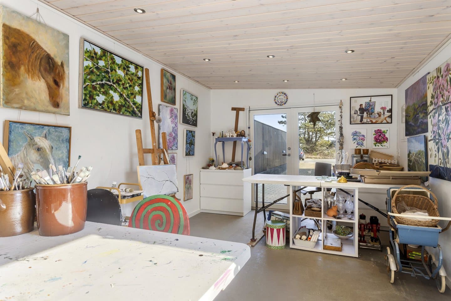 Som en ekstra kvalitet er udhusbygningen fuldt renoveret og isoleret, og er i dag indrettet med anneks med badeværelse og hobbyrum. Her er anvendelsesmulighederne mange – hvad enten det er til gæster, hjemmearbejde eller kreative projekter.