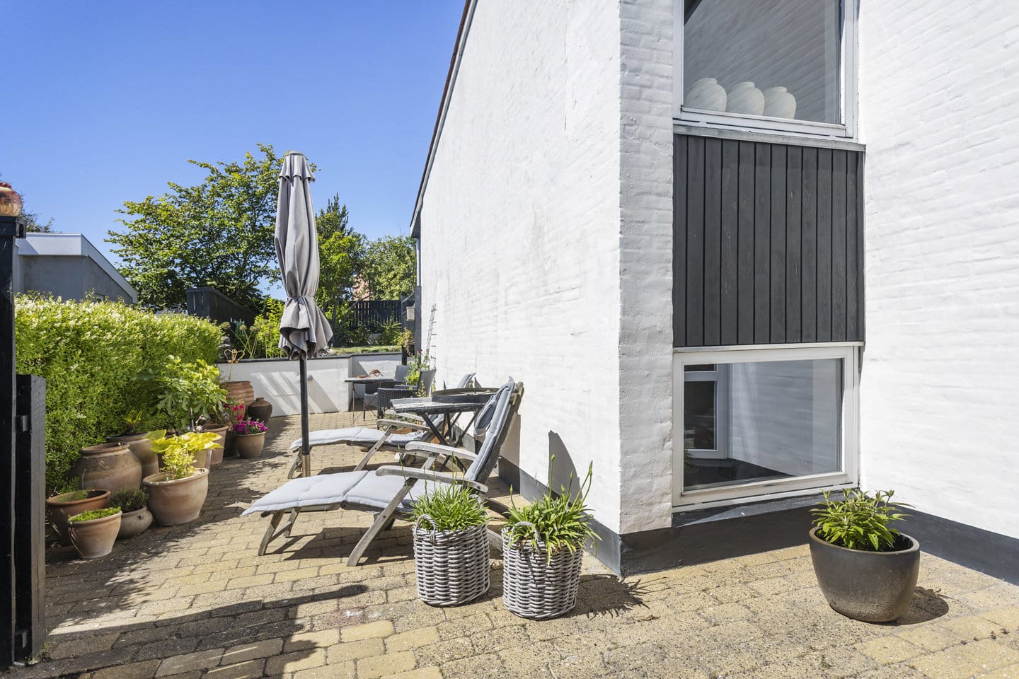 Udendørs venter et charmerende og ugeneret gårdmiljø, der indbyder til hyggelige stunder året rundt og mulighed for at finde ente sol eller læ hele dagen. Haven er nem og overskuelig, hvor man med egen haveboring altid bør kunne fremvise en grøn græsplæne. Haven er i øvrigt perfekt til både afslapning og leg.