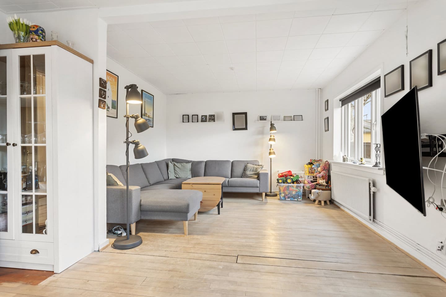 Førstesalen er indrettet med tre gode og regulære værelser, der nemt kan anvendes som soveværelse, børneværelser, kontor eller gæsteværelse – alt efter behov.