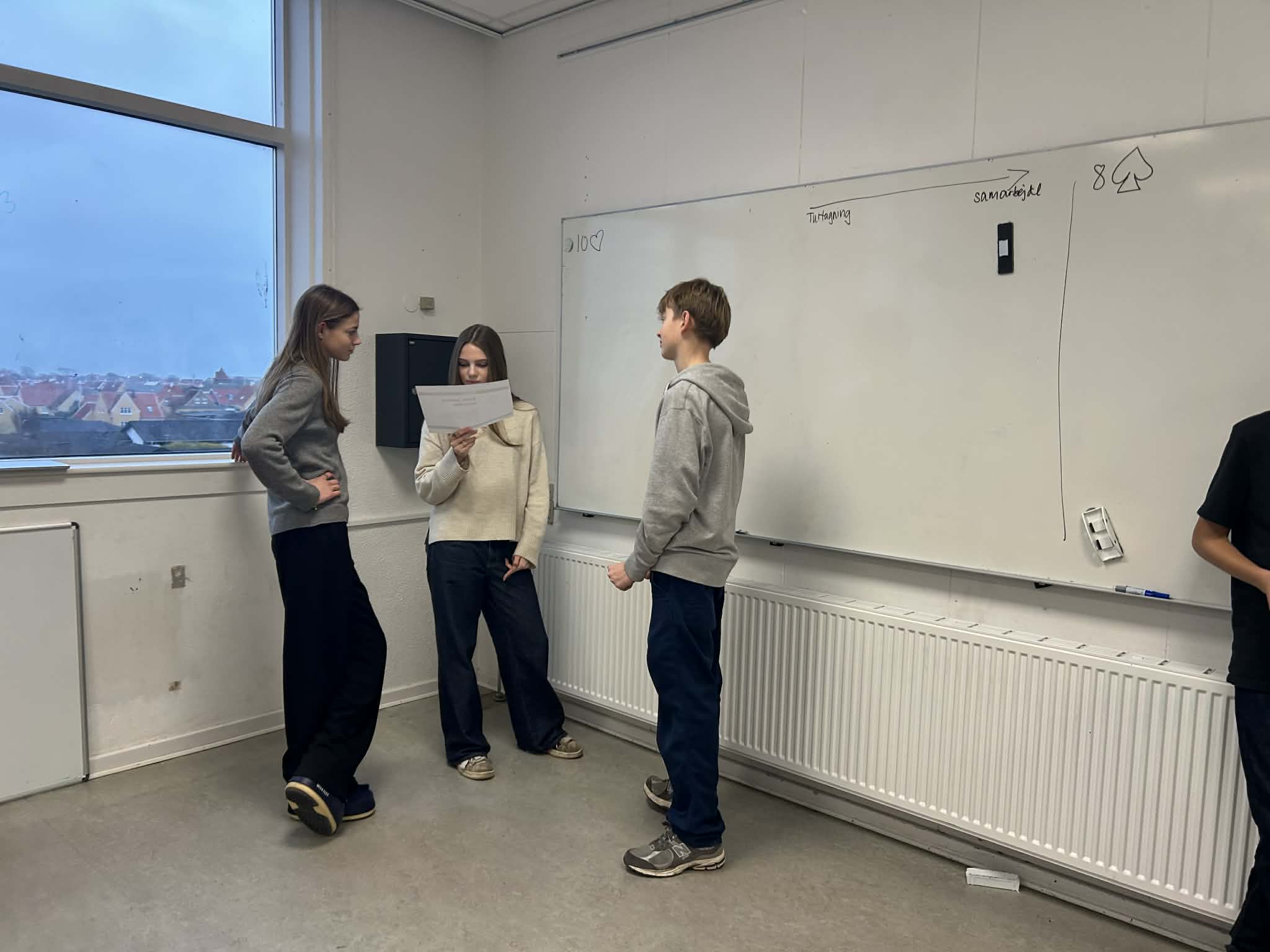 Senest har 8. årgang prøvet kræfter med BTC i dansk. Her blev eleverne inddelt i grupper via spillekort og kastede sig straks ud i dagens udfordring. Allerede i løbet af de første minutter var alle elever i gang, og klasselokalet summede af livlig snak. Efter kort tid havde den første gruppe løst opgaven, og herefter gik klassen videre til dagens egentlige opgaver: brainstorm ud fra et billede, finde en passende overskrift, læse og analysere en kortprosatekst, arbejde med person- og miljøbeskrivelser samt sproglig opmærksomhed på ordklasser og kategorisering.