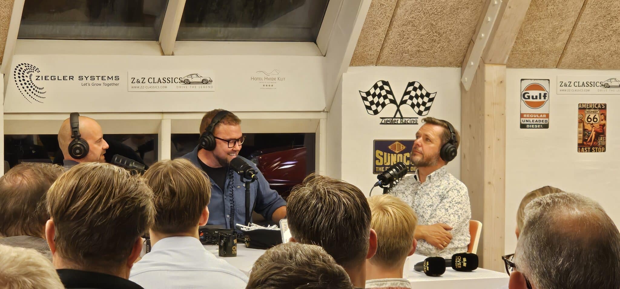Det blev en mindeværdig aften i motorsportens tegn, da podcasten Over Stregen tirsdag aften rykkede ud af studiet og ind i den store Pyramide på Hotel Hvide Klit i Aalbæk.