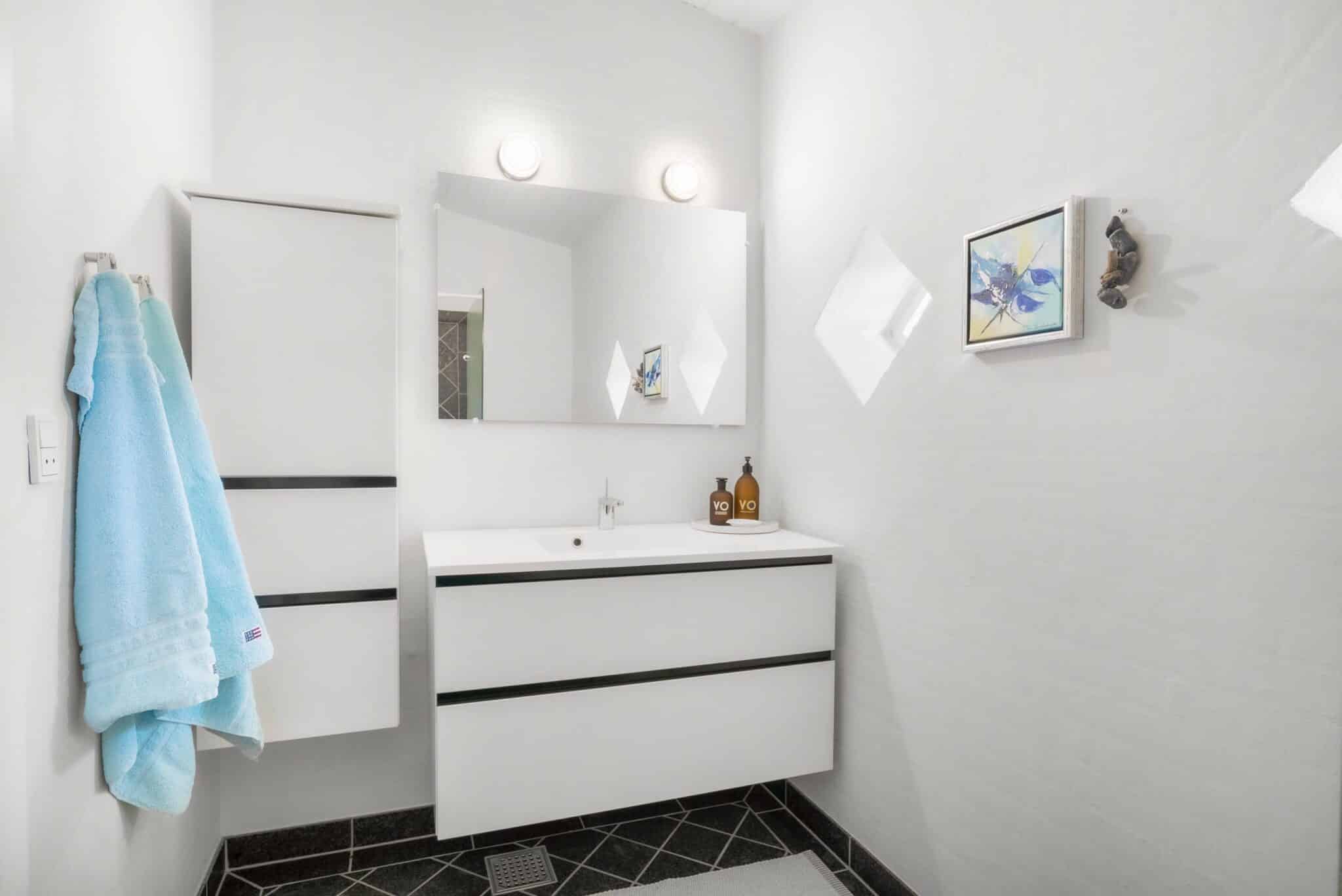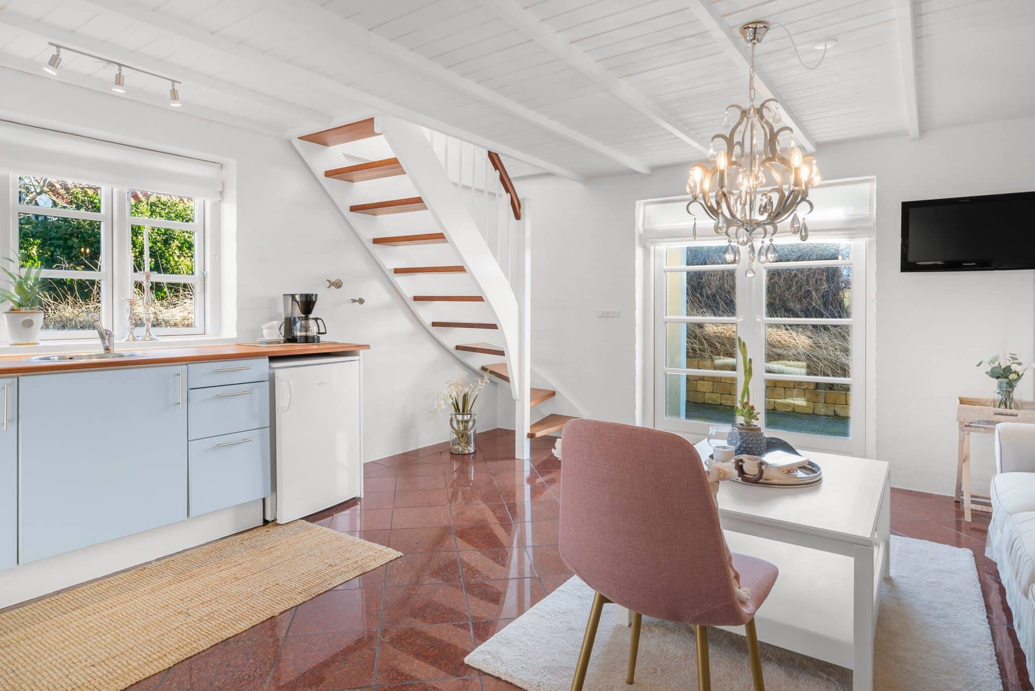Anneksbygningen udgør et charmerende supplement til hovedhuset, med et stort alrum, badeværelse og udgang til en solbeskinnet terrasse. På førstesalen i annekset finder I en soveafdeling med en balkon, der giver mulighed for at nyde udsigten til havet og Skagens travle havn. Fragt- og handelsskibe lyser natligt op som lanterner på vandet.