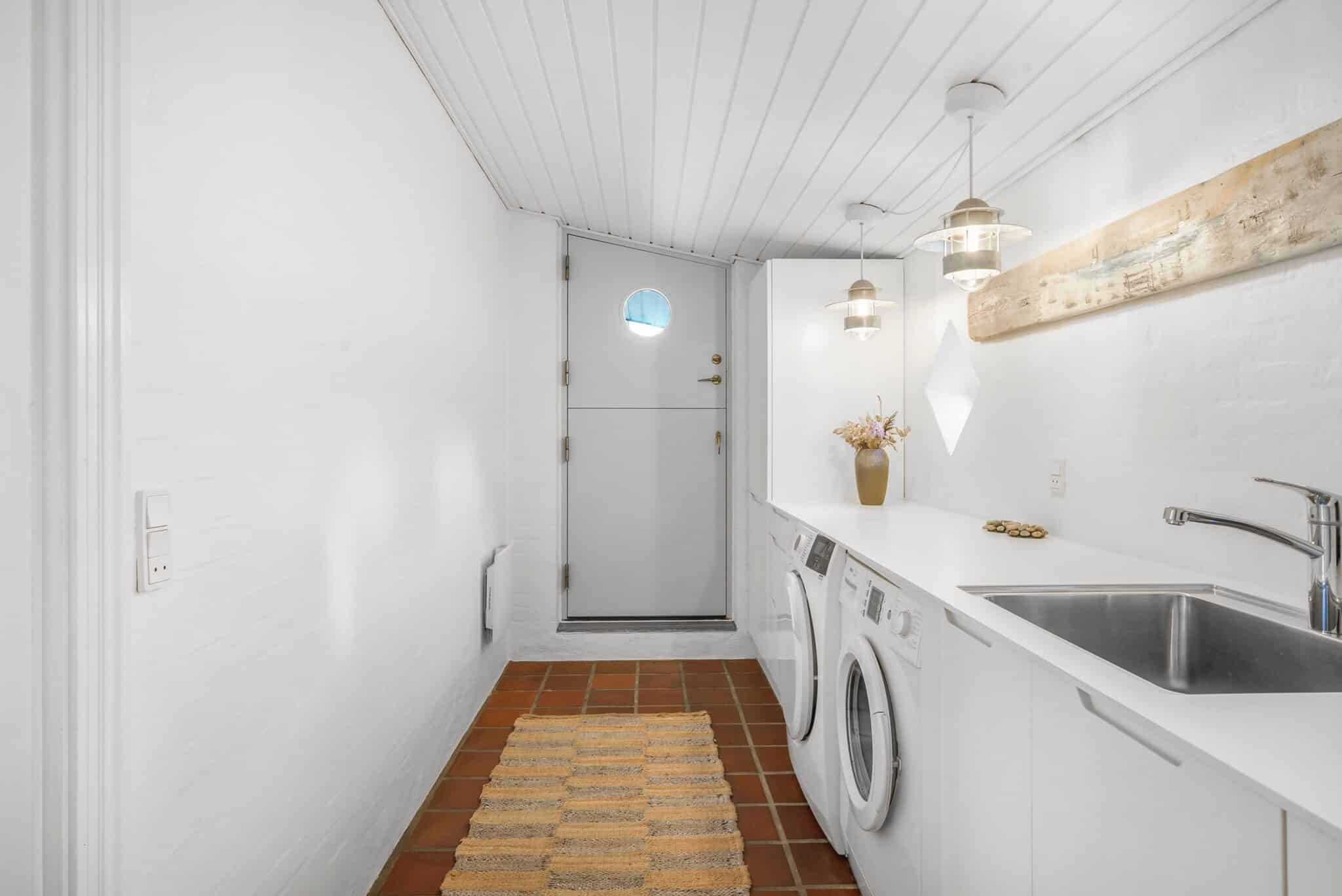 Boligens indretning er nøje planlagt for at skabe en flydende overgang mellem de forskellige opholdsrum og udendørsarealer. Gennem entréen træder du ind i et stort køkkenalrum med tilstødende stue og udgang til terrassen samt en indbydende udestue. Et master bedroom med tilhørende walk-in garderobe og badeværelse udgør en privat oase. Yderligere tre værelser og et badeværelse med badekar udgør en separat værelsesafdeling, ideel til familie og gæster. Herudover er der et praktisk bryggers med adgang til et ekstra køkken/grovkøkken.