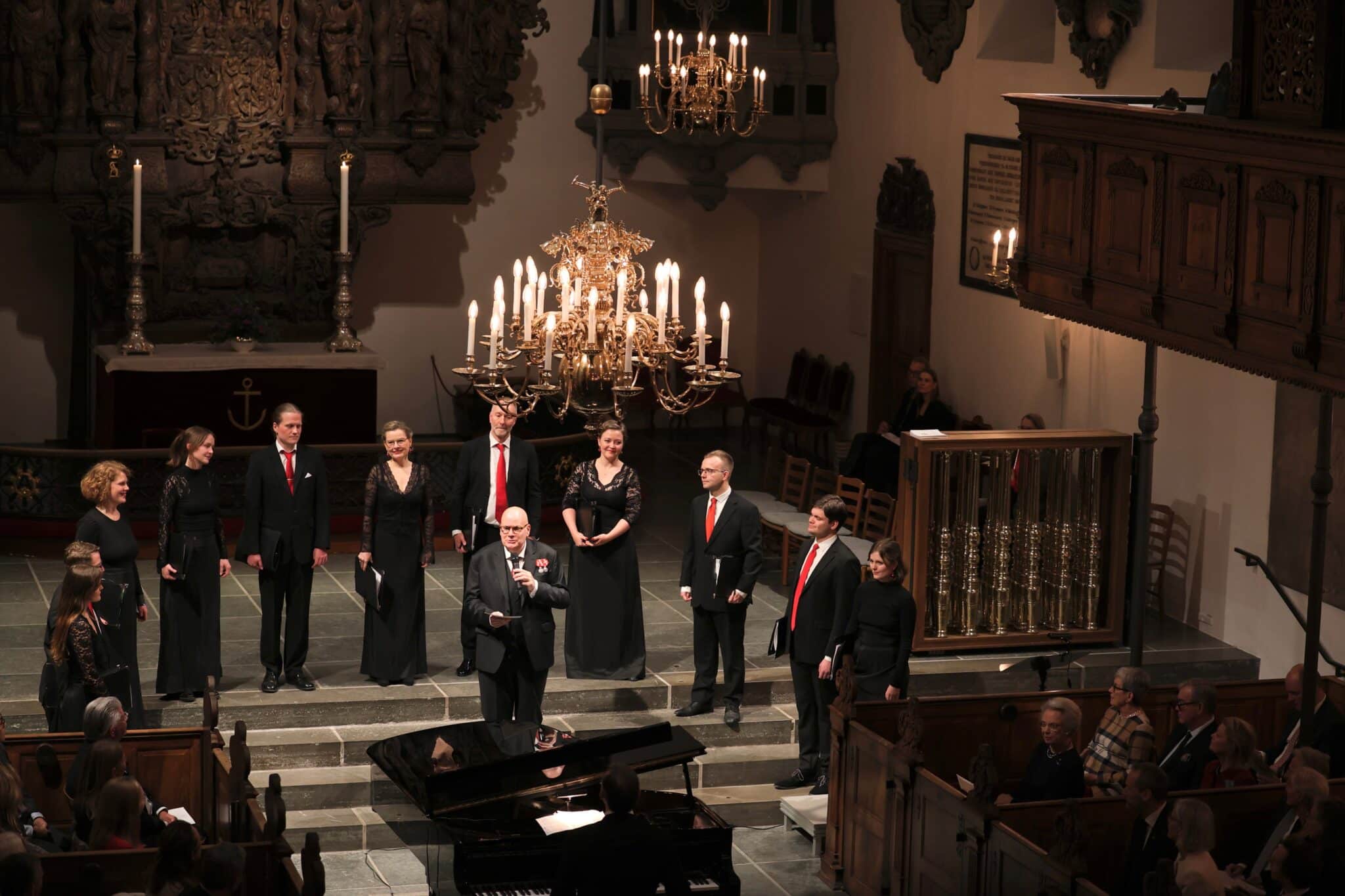 Ved det traditionsrige julearrangement var det Holmens Kirkes Vokalensemble der underholdt med julesange – og åbnede programmet med julesangen fra Skagen. Holmens Vokalensemble har været på juleturné og givet koncerter i en række danske kirke, – også Skagen Kirke, og ved samtlige koncerter i år, har Skagens Julesang været på programmet.