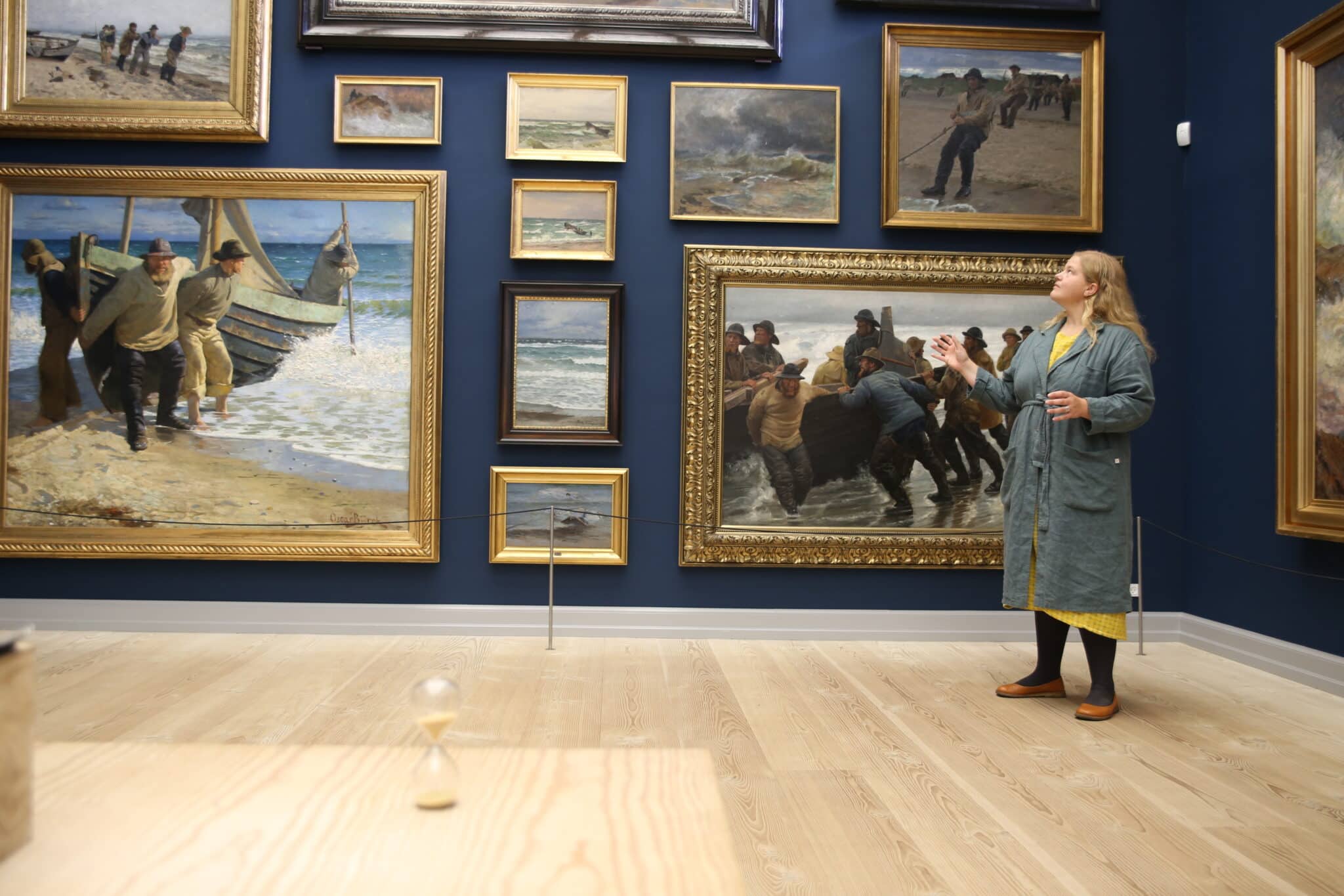 På førstesalen har vi indrettet et rum til metoden med en miniguide til, hvordan man bærer sig ad. Alle er velkomne til at kigge forbi, slå sig ned i sofaen og selv prøve at Se Langsomt på Skagens Museum.
