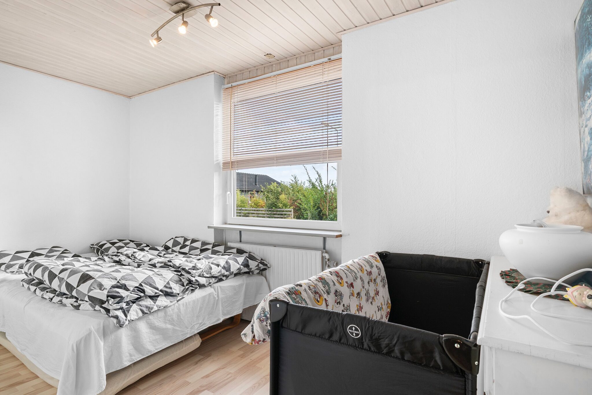 Hjemmet rummer i alt tre værelser samt et soveværelse med indbyggede skabe, hvilket giver god plads til både børn, gæster og hjemmekontor.