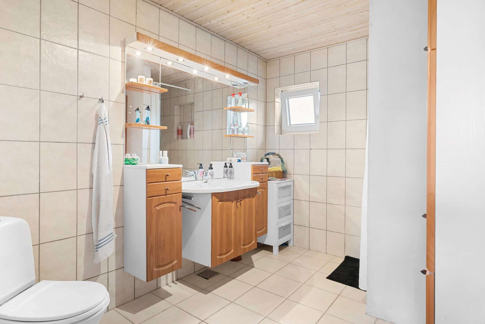 Badeværelset er indrettet med gulvvarme og bruseniche, og bryggerset bidrager med ekstra funktionalitet i hverdagen.