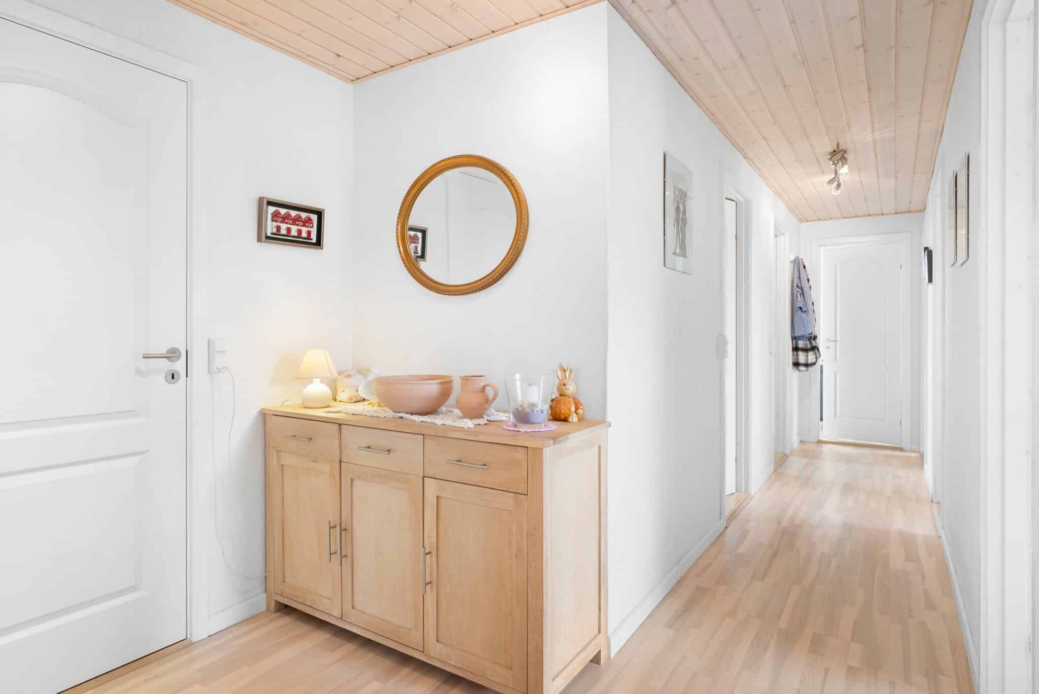 Entréen fungerer som en praktisk velkomst til huset, men rummer samtidig et stort potentiale – her kan du med få greb etablere enten et gæstetoilet eller et velfungerende viktualierum.