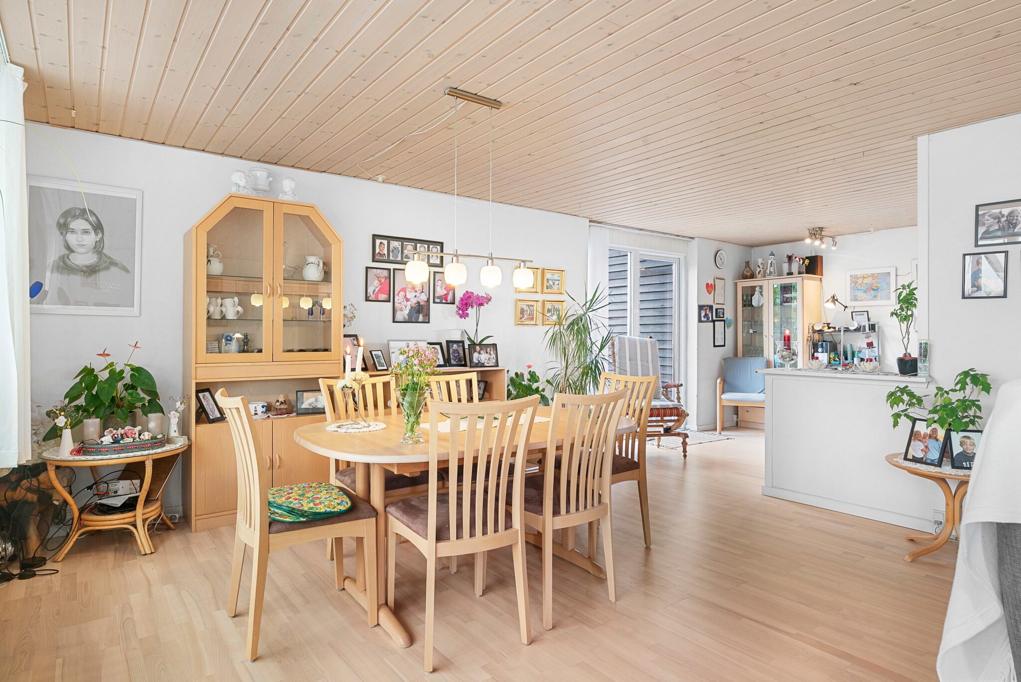 Boligen byder på en gennemtænkt planløsning, hvor de 132 m² er udnyttet optimalt. Hjertet af huset er den store, lyse stue i åben forbindelse med køkkenet – et oplagt samlingspunkt for familien.