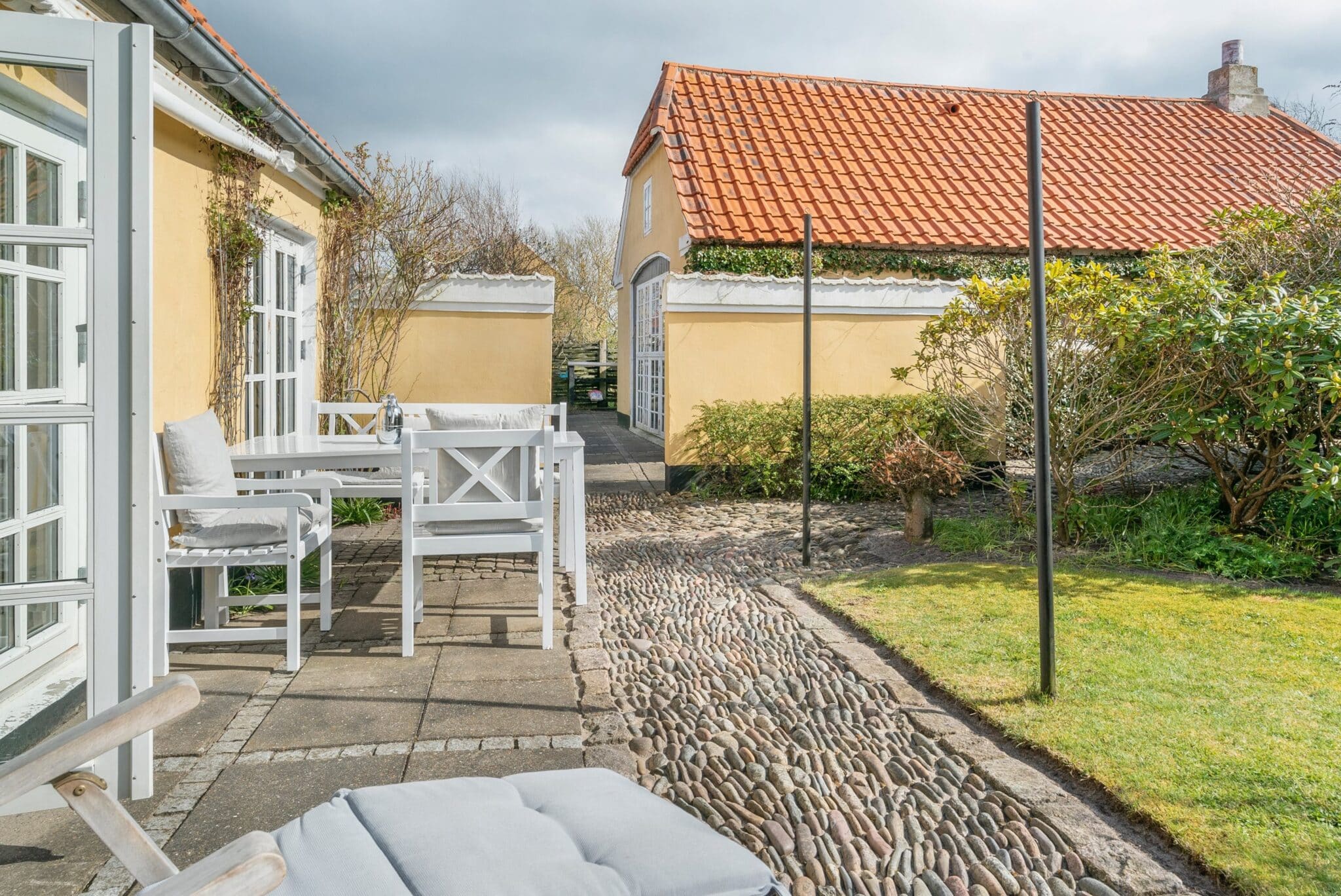 Dette smukke dobbelthus ligger kun få hundrede meter fra Sønderstrand og byder samtidig på en unik beliggenhed, hvor man kan færdes uforstyrret både inde i huset og ude i haven og den hyggelige gårdhave.