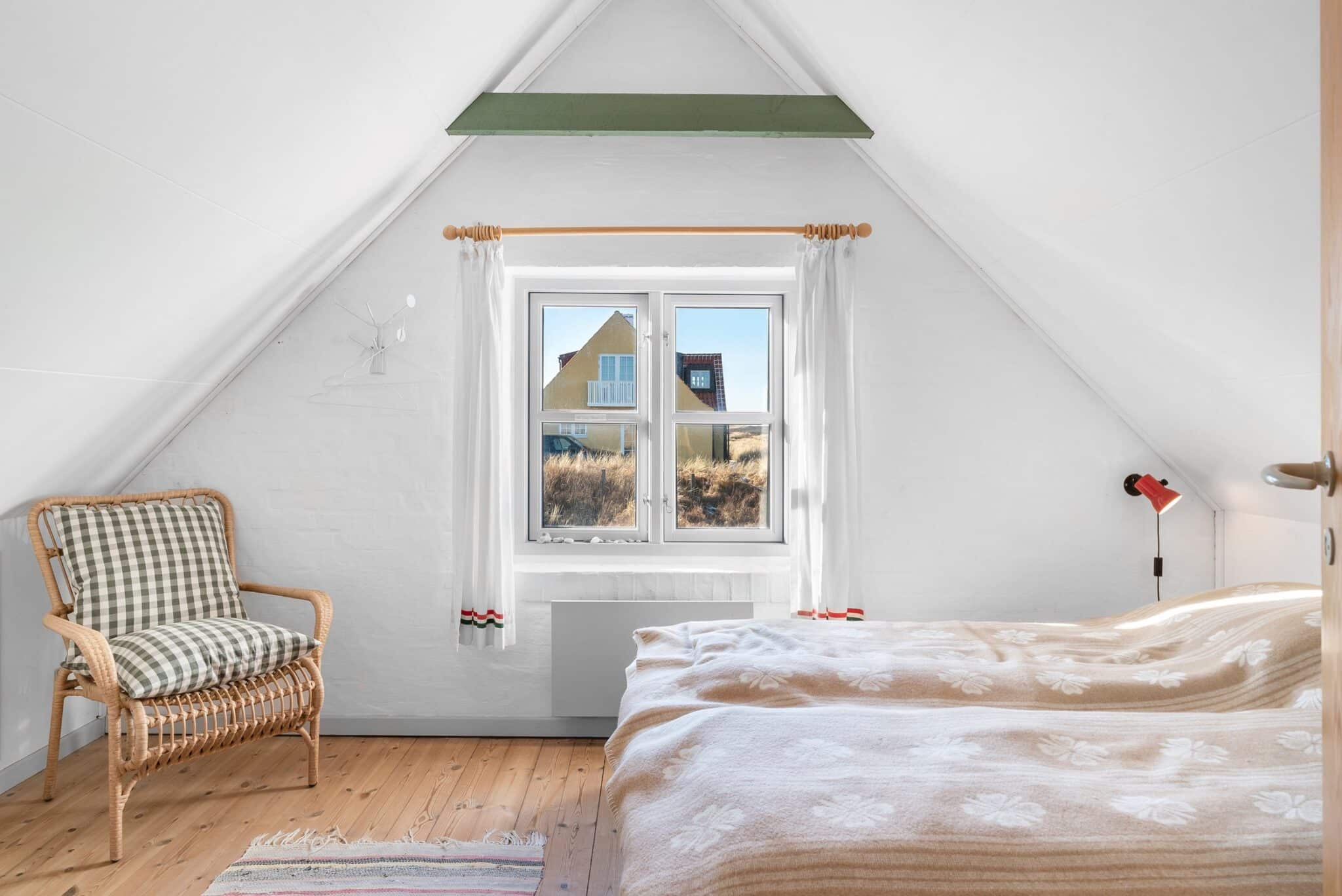 På førstesalen finder du to lyse værelser samt en repos, der kan indrettes med ekstra sovepladser. Fra husets udsigtsstue har du en enestående mulighed for at opleve solnedgangen over Gl. Skagen. Herfra kan du nyde den betagende udsigt over det karakteristiske klitlandskab, hvor marehalmen svajer i vinden, og de store, bløde klitter danner en smuk, naturlig ramme om horisonten.