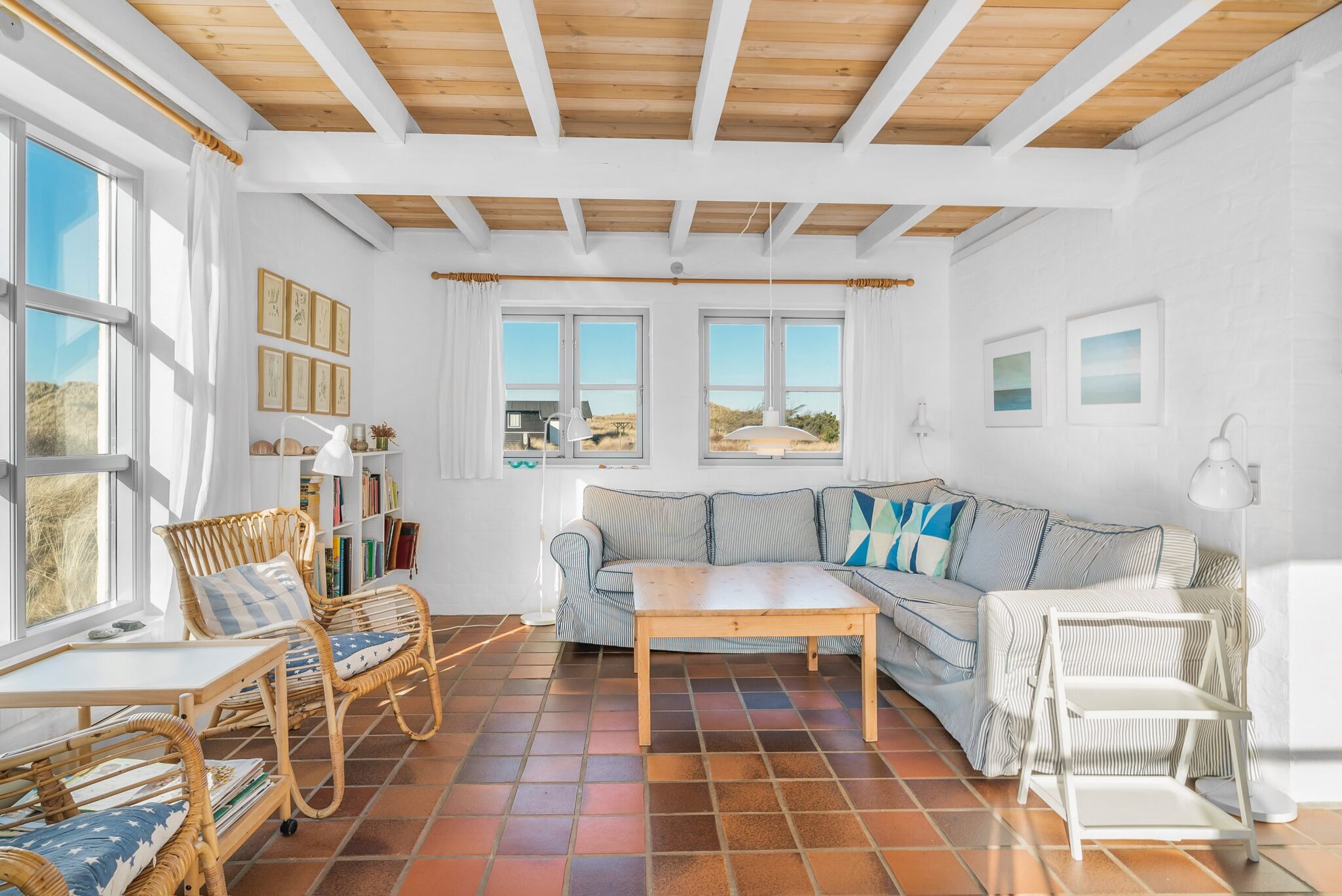 Indenfor mødes du af en varm og hyggelig atmosfære, hvor de særlige detaljer, der kendetegner en ægte Skagensvilla, skaber en afslappet feriestemning. Huset er skabt til både ro og samvær med lyse, luftige rum, der inviterer naturen helt ind.