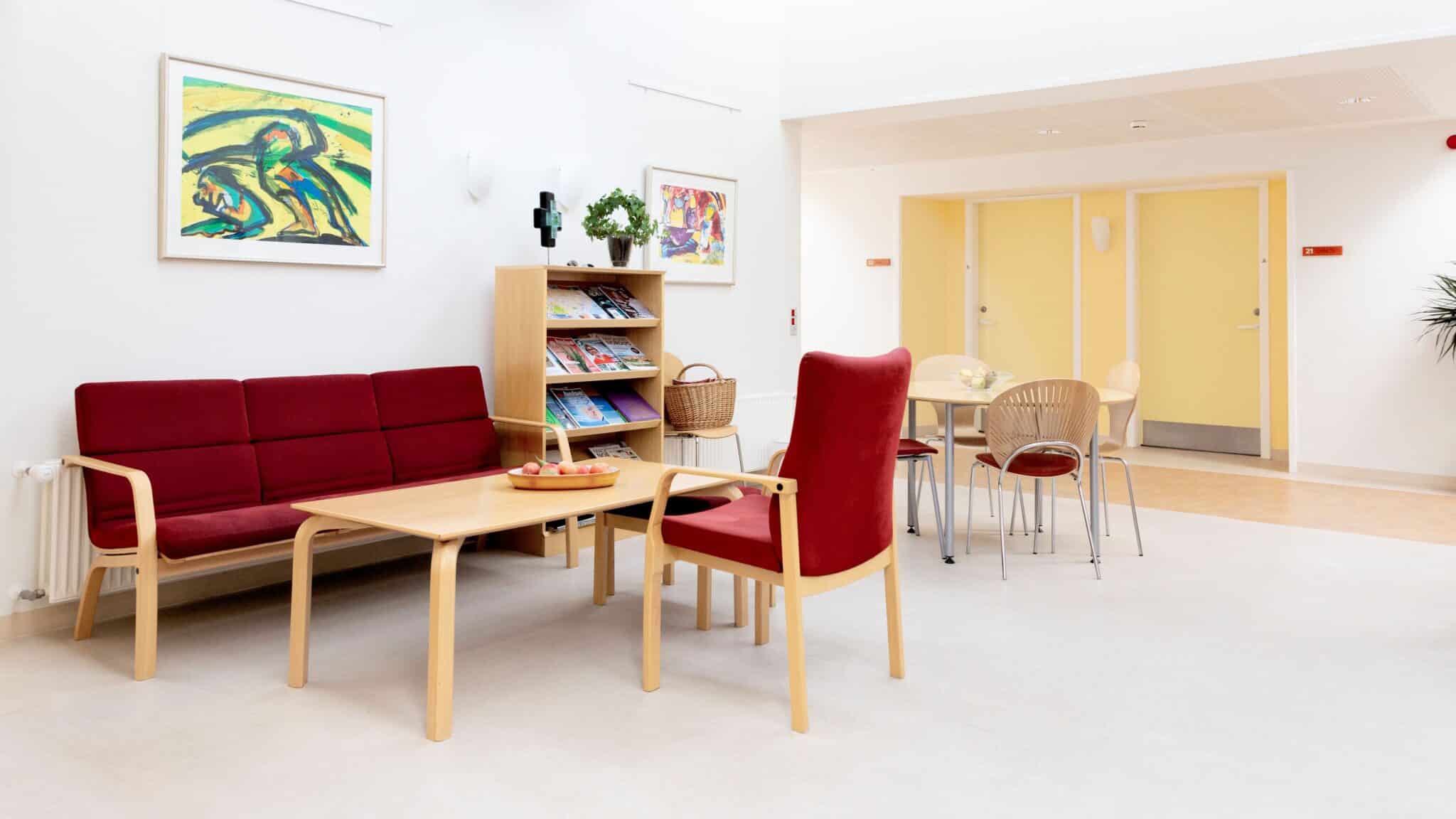 Skagen Gigt- og Rygcenter er beliggende i en tidligere hospitalsbygning, og det bærer fællesrummet præg af, så en modernisering er tiltrængt. Opholdsrummet anvendes flittigt af patienterne i aftentimerne under deres ophold, som typisk varer op til tre uger. Her mødes patienterne til socialt samvær og erfaringsudveksling om livet med gigt- og ryglidelser.
