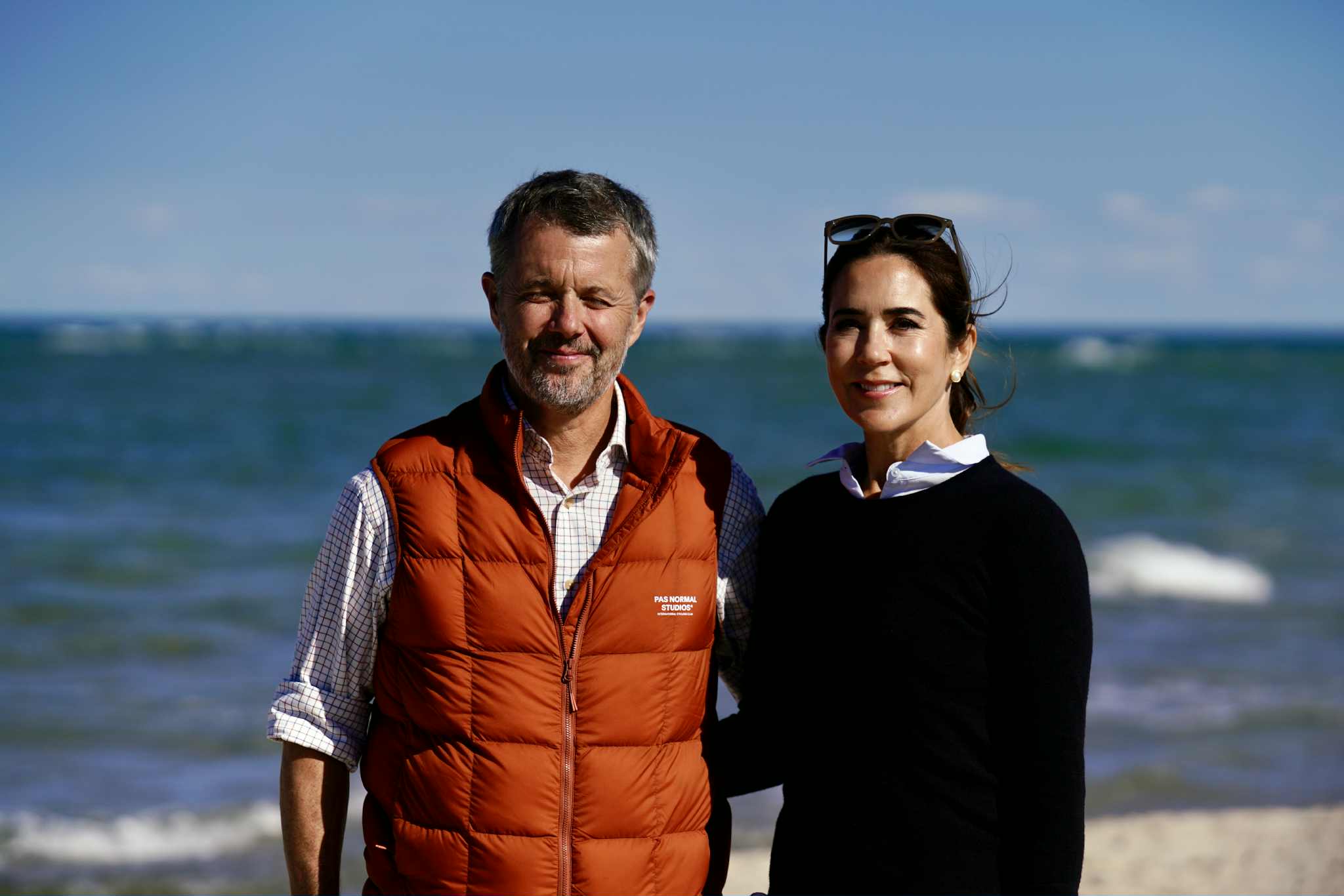 Da vejret viste sig fra sin bedste side, og Kongeparret sågar var ca. 10 minutter foran tidsplanen valgte de at tage den friske beslutning at spadsere den ca. 1,5 kilometer lange vej ad stranden, ind til Grenens parkeringsplads, frem for at tage Sandormen.