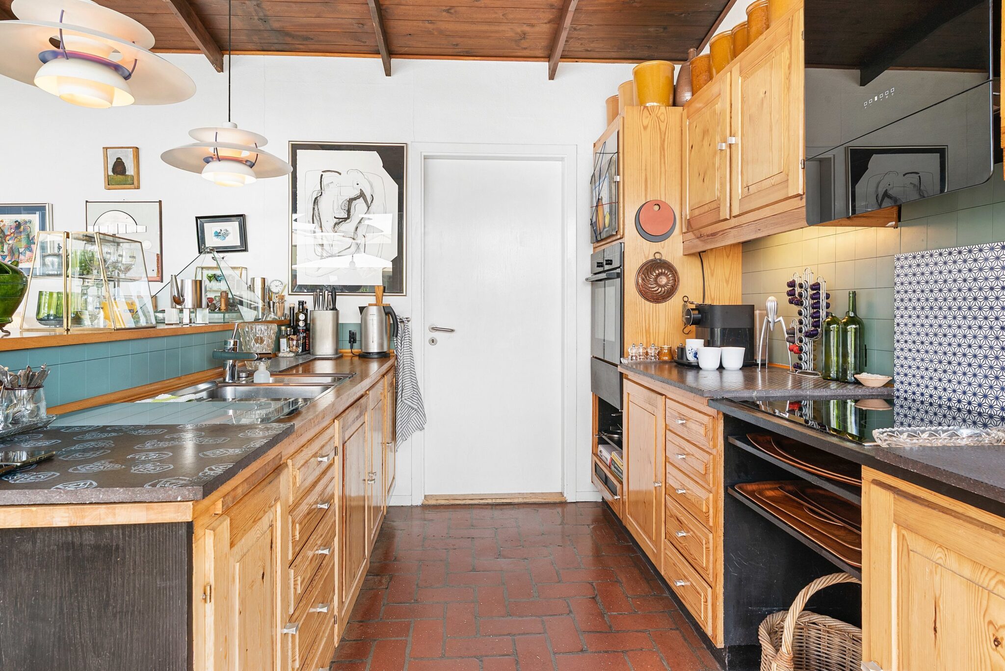 Den rummelige spisestue er forbundet med et smukt snedkerkøkken, der er designet til både hverdag og gæstfrihed. En pejs i spisestuen bidrager til den varme og indbydende stemning, mens loftet til kip giver en fantastisk rumfornemmelse. Fra spisestuen er der ligeledes udgang til gårdhaven. Køkkenet er praktisk indrettet med adgang til et viktualierum og bryggers, samt et lille ekstra værelse, der kan benyttes som opbevaring eller soveværelse.